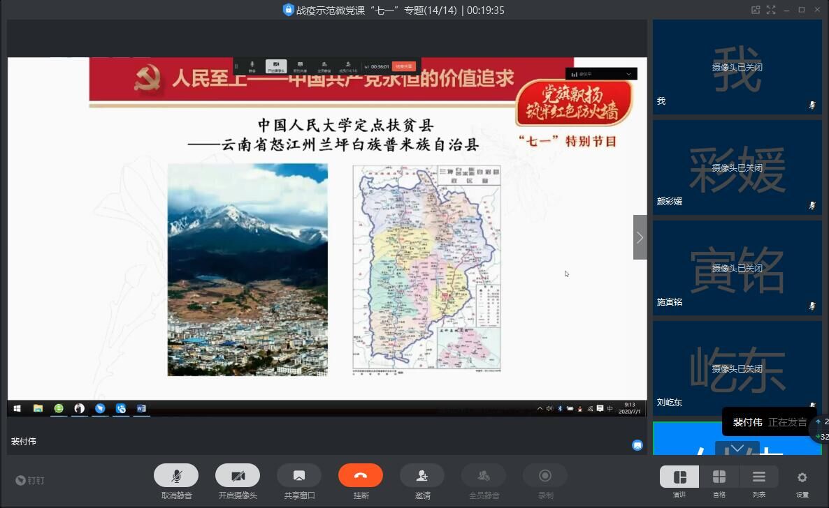 2020年7月1日,时值中国共产党的99岁生日和深入推进常态化防控新冠肺炎疫情的重要时刻,XCsports员工党支部组织师生党员通过线上钉钉集中学习方式观看了由中国人民大学、北京科技大学、复旦大学、西安交通大学4校联合开讲的“党旗飘扬·筑牢红色防火墙”高公司党组织战“疫”示范微党课“七一”专场。