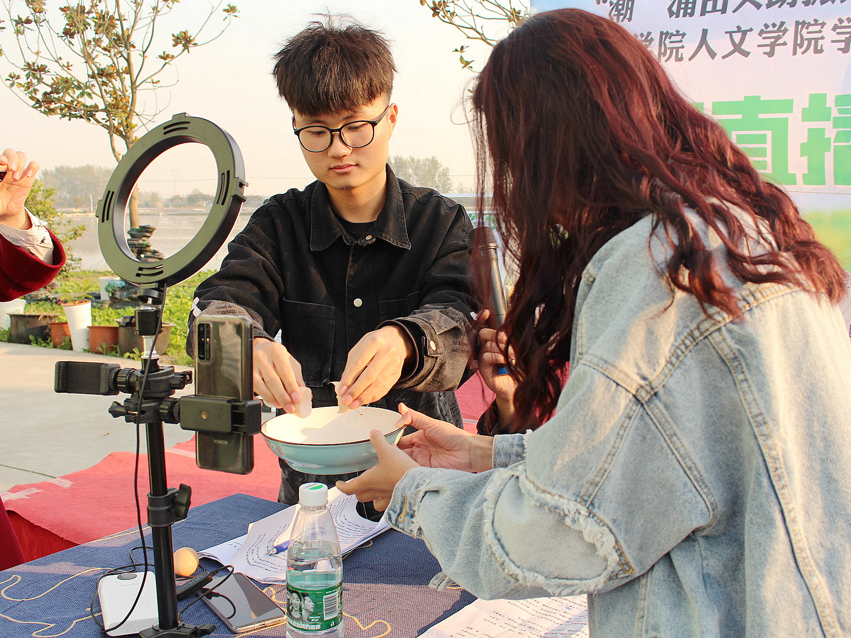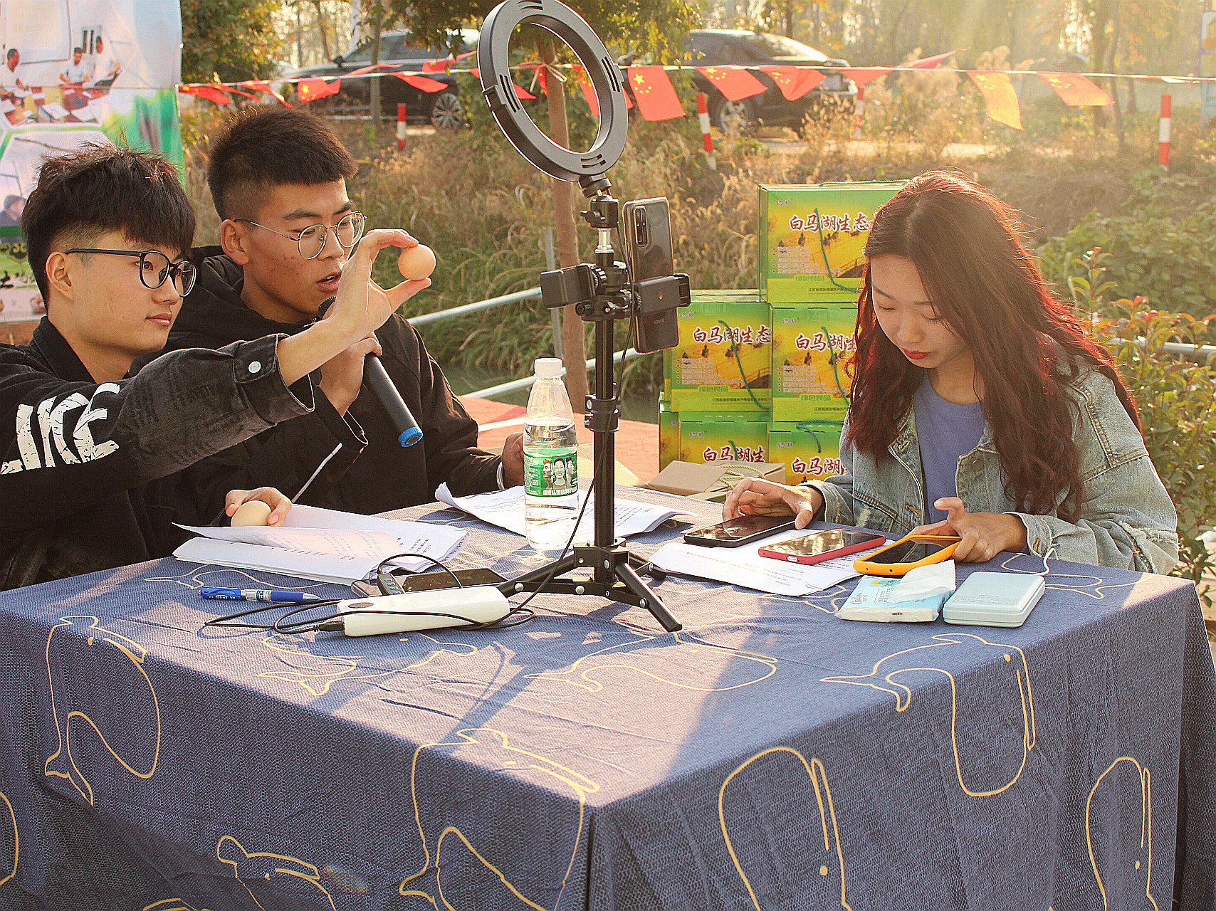 从下载APP软件开始,到直播平台账号注册,开设线上商店,到商品上架等电商技能的学习,在操作层面上手把手教村民们。同学们为当地农户展示了直播的全过程,他们相继推出领湖大闸蟹、白湖草鸡蛋、三江秀芡实等特色农产品。生动别致的直播形式和妙趣横生的直播语言让当地村民大开眼界。
