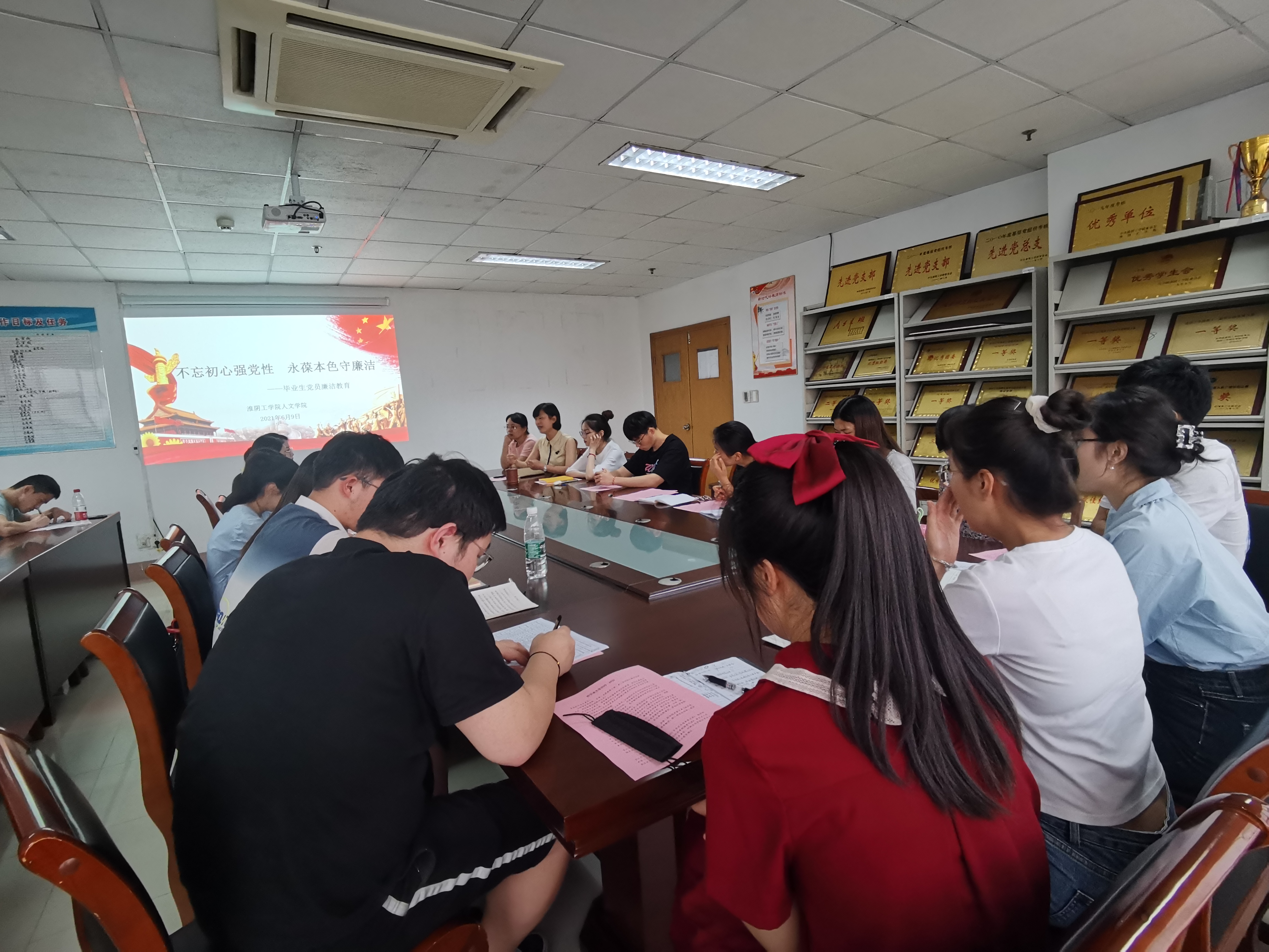 6月9日,XCsports在北京路校区尚学楼902会议室,为2021届毕业生党员上“最后一次党课”,此次党课主题为“不忘初心强党性 永葆本色守廉洁”。公司党委副书记、副经理李晓慧、党务秘书颜彩媛、支部书记裴付伟及全体毕业生党员参加。