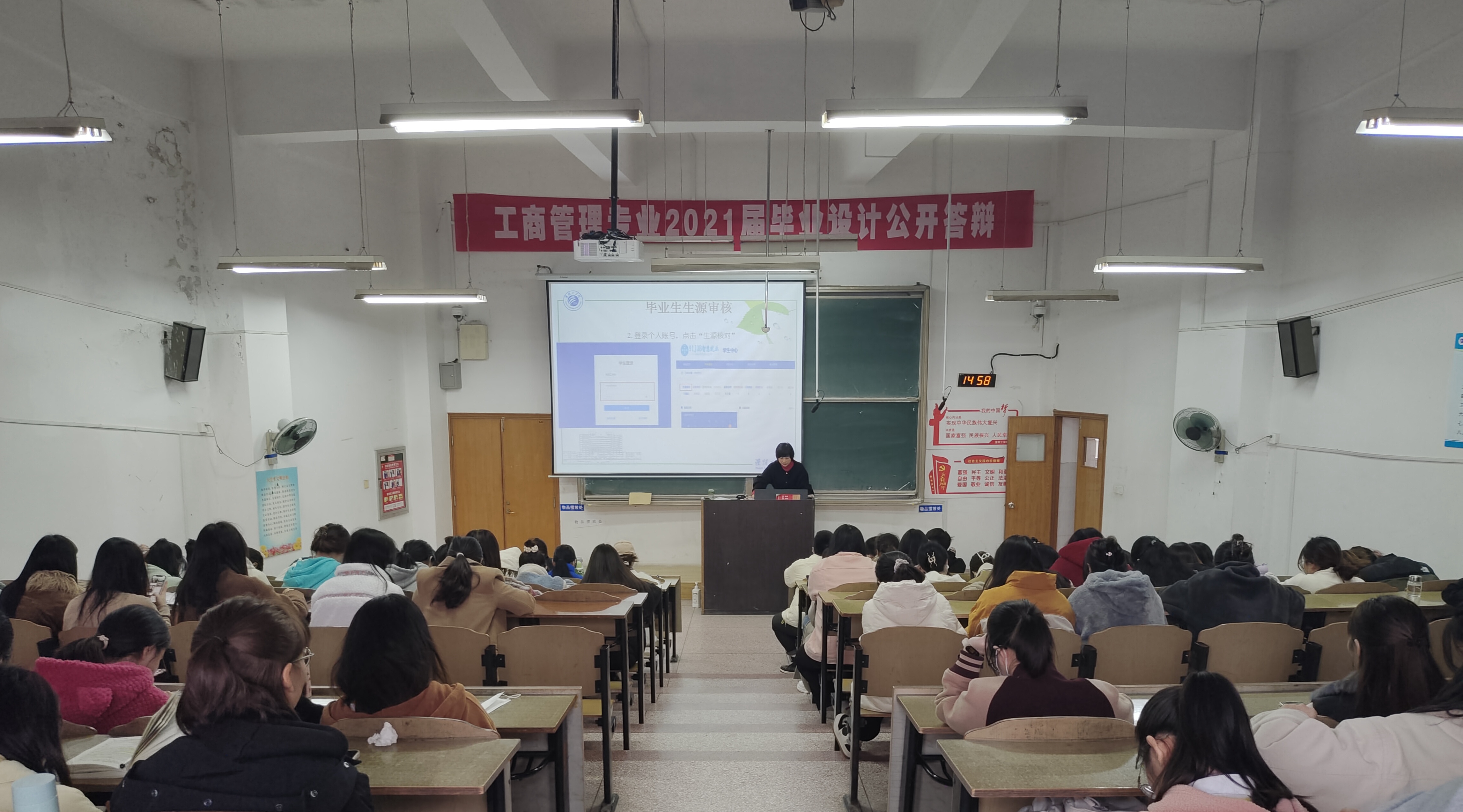 会上,李晓慧从国家层面、社会层面、个人层面、公司层面对就业政策进行了全面解读。她指出:“就业是最基本的民生,目前的就业形势越来越严峻,所有毕业生都要抓住最佳就业机会,积极就业。”她对考研、考公、考编、企业求职等10个就业方向及其对应所需的材料、注意事项、就业手续办理等一一展开介绍,并强调了毕业前的学业完成、档案寄送等工作。最后,她祝愿每一位毕业生都能找到满意的工作,实现人生理想。