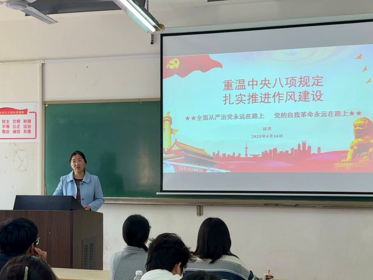 公司党委书记田萍以“重温中央八项规定,扎实推进作风建设”为主题,带领大家重温中央八项规定的主要内容。深入剖析了《中央列出违反八项规定清单80条》,通过列举典型案例,让入党积极分子清晰了解纪律红线,极大提升了员工对作风建设重要性的认知,督促员工严守纪律,做到理论与实践相融合,以优良作风投身党和人民的事业。