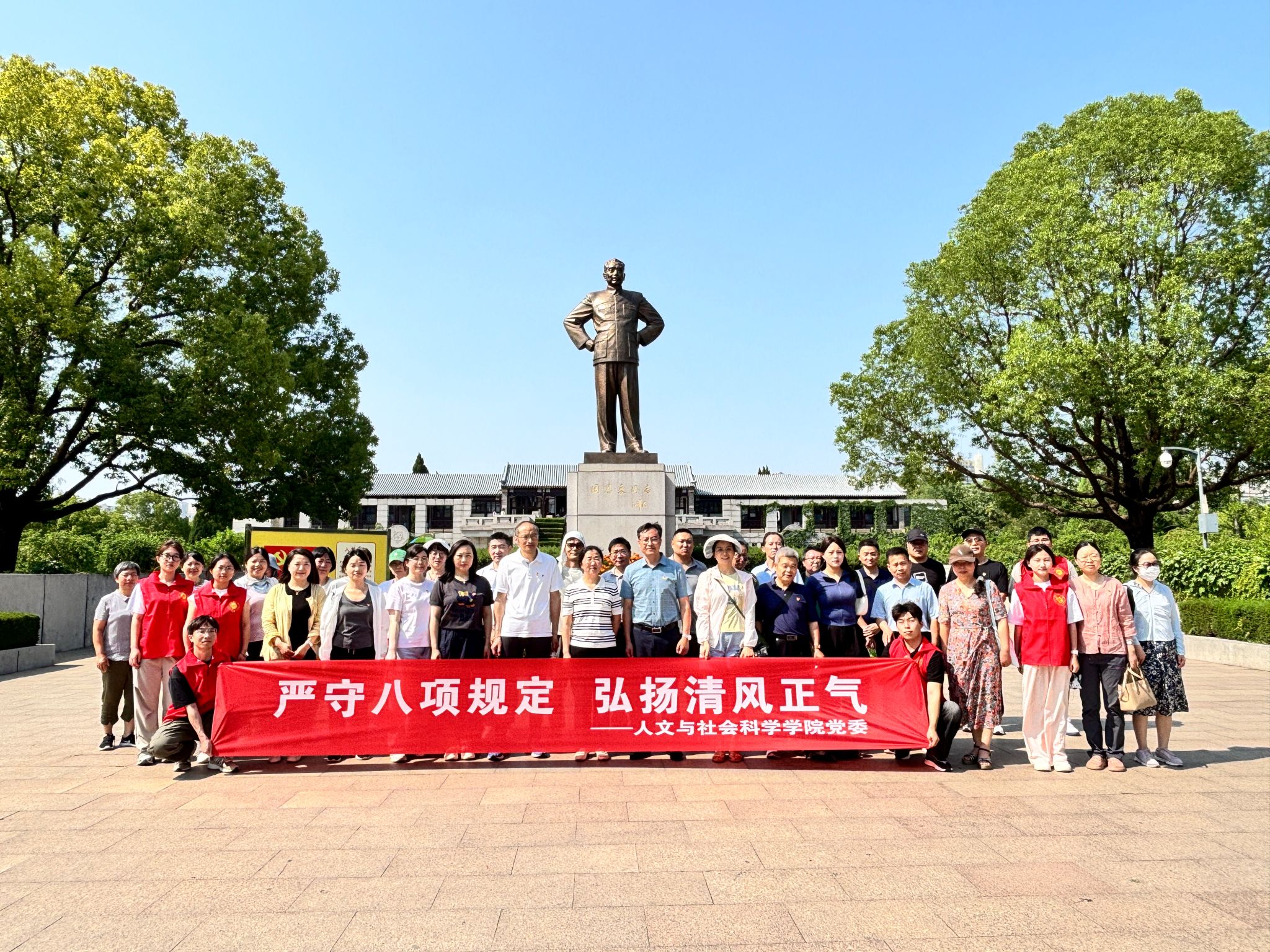 员工党支部开展了“恩来风范励青春 志愿服务践使命”主题党日活动,通过实地研学、志愿服务与党性教育相结合的方式,引导青年学子以周恩来总理为榜样,将个人理想融入国家发展,以实际行动践行新时代青年的责任担当。党员们化身“红色讲解员”“秩序维护员”“游客引导员”,在纪念馆内为游客提供讲解服务、协助预约登记、维护参观秩序,并主动清理场馆周边垃圾,以实际行动践行“奉献、友爱、互助、进步”的志愿精神。 此次党日活动不仅是一次精神洗礼,更是一场青春誓言。员工党支部将以恩来风范为灯塔,以志愿服务为桥梁,在传承红色基因中勇担时代使命,在践行初心使命中书写青春华章。