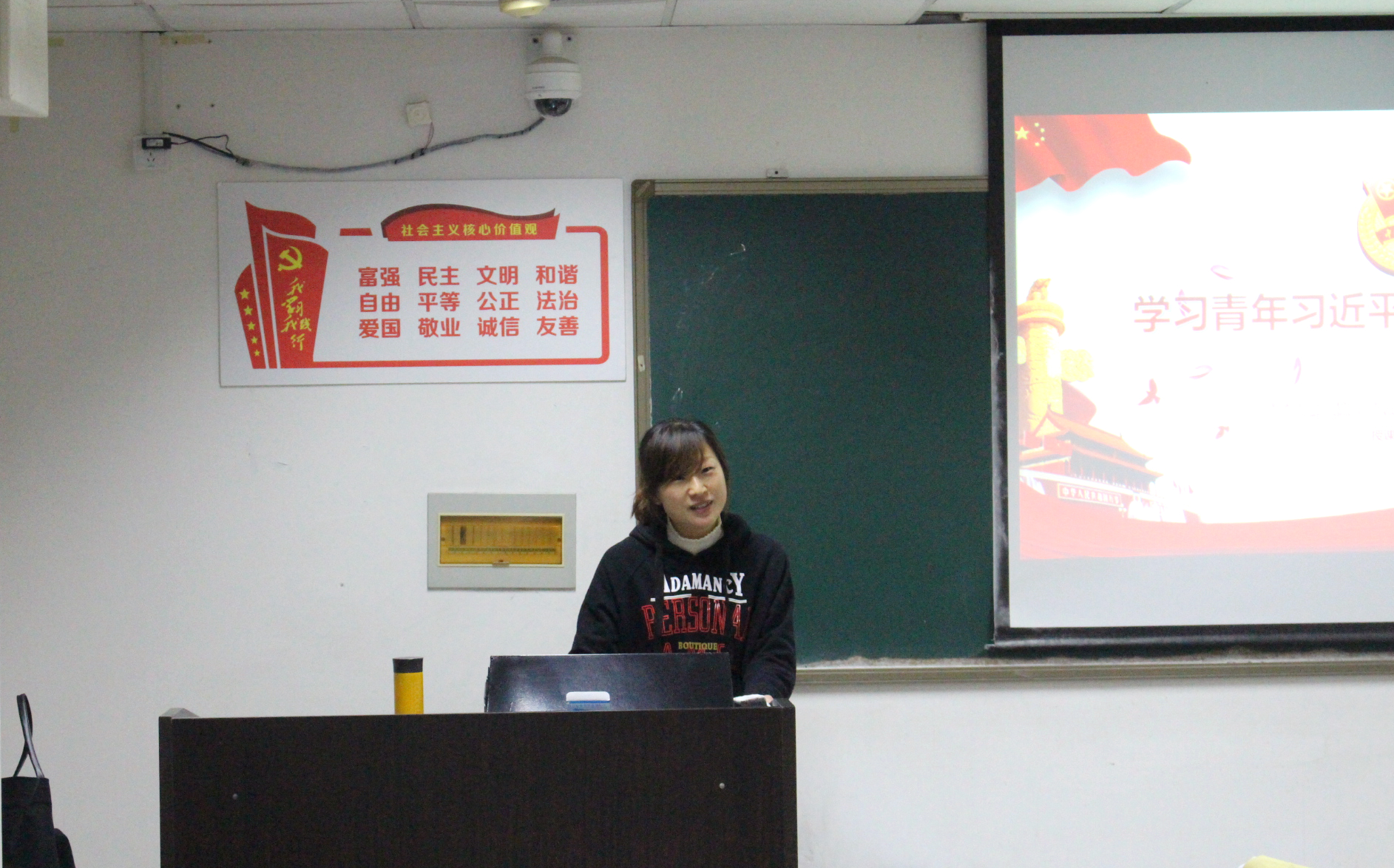 “青年兴则国家兴,青年强则国家强。”习近平总书记在十九大报告中对当代青年寄予深切期望。团课的开始,李晓慧老师向大家介绍了习近平总书记在梁家河七年的知青岁月以及在河北省正定县主政的事迹,让大家深刻感受到习近平总书记勤奋好学、热爱读书、勤政廉政、勇于担当的精神。紧接着,李晓慧就习近平总书记的奋斗历程,希望大家在四个方面向习近平总书记学习:1、勤奋刻苦,学以致用 2、严于律己,以德为先 3、锐意进取,善政为民 4、学习榜样,成就梦想。