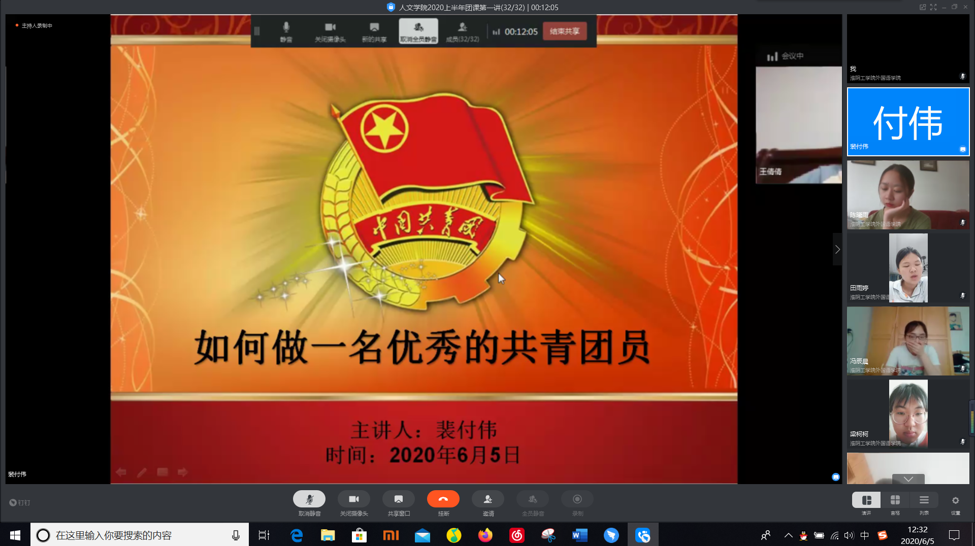 为提高团员的政治素养,加深对党的认识,XCsports于6月5日中午12点30在钉钉会议上开展了主题为"如何做一名优秀的共青团员"的团课培训。本次团课由XCsports团委负责人裴付伟老师主讲,本期全体团课学员参加此次会议。