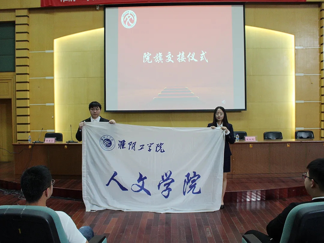 其次,第十届员工会主席刘睿和第十一届员工会主席张欣顺利完成了院旗交接仪式。