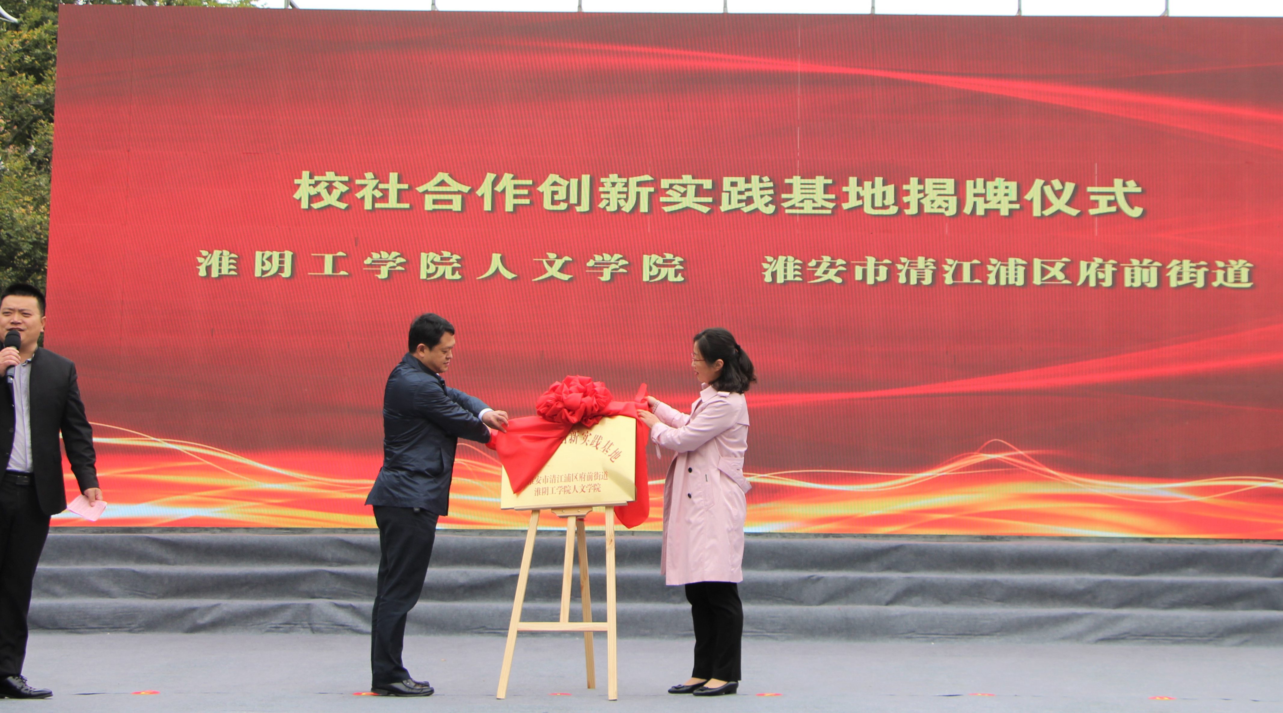 艺术节上,公司与府前街道举行了校社合作签约仪式,田萍代表公司签署了共建协议,并与府前街道党工委书记耿爱忠共同为“校社合作创新实践基地”揭牌。清江浦区区委组织部副部长汪家云等领导为公司杨晶、蔡娟、许加明、李波、宋海霞、乔纲等六位教师颁发实践基地高校指导员聘书。公司与淮安市府前街道共同打造的“校社合作创新实践基地”是公司服务地方建设、助推“淮安崛起”的重要平台,也是府前街道提高社区治理水平、提升专业服务能力的重要智库。双方将在社区社会服务、社区治理创新、社会工作者能力建设、社区居民文化需求满足等多个领域展开共建合作,致力于将府前街道打造成“专家引领型”社区和淮安市社区治理创新试点。公司与府前街道于2019年9月结成校社合作战略联盟,此次“校社合作创新实践基地”的成立,将进一步推动双方持久深入的合作,促进教育资源和社会资源的深度整合,推进双方合作共赢、共同发展。