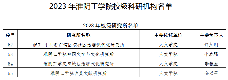 近日,集团下发了《关于设立2023年XC体育校级科研机构的通知》(淮工院〔2023〕47号),XCsports申报的四所校级科研机构全部获批,分别为淮工-中共清江浦区委社区治理现代化研究所、XC体育中国文学与文化研究所、XC体育市域法治现代化研究所、XC体育古典文献研究所。