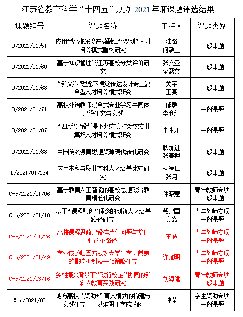 近日,江苏省教育科学规划领导小组发布了《关于公布江苏省教育科学“十四五”规划2021年度课题的通知》,公司李波博士申报的《高校课程思政建设碎片化问题与整体性改革路径》、许加明博士申报的《学业成败归因方式对老员工学习倦怠的影响机制及干预策略研究》、刘海健博士申报的《乡村振兴背景下“政行校企”协同的新农人教育实践研究》3项课题全部获批,立项率为100%。这是公司继2013、2018、2020年分别获批1项江苏省教育科学规划课题之后,再度获批该项目,且获批数量创历史新高。