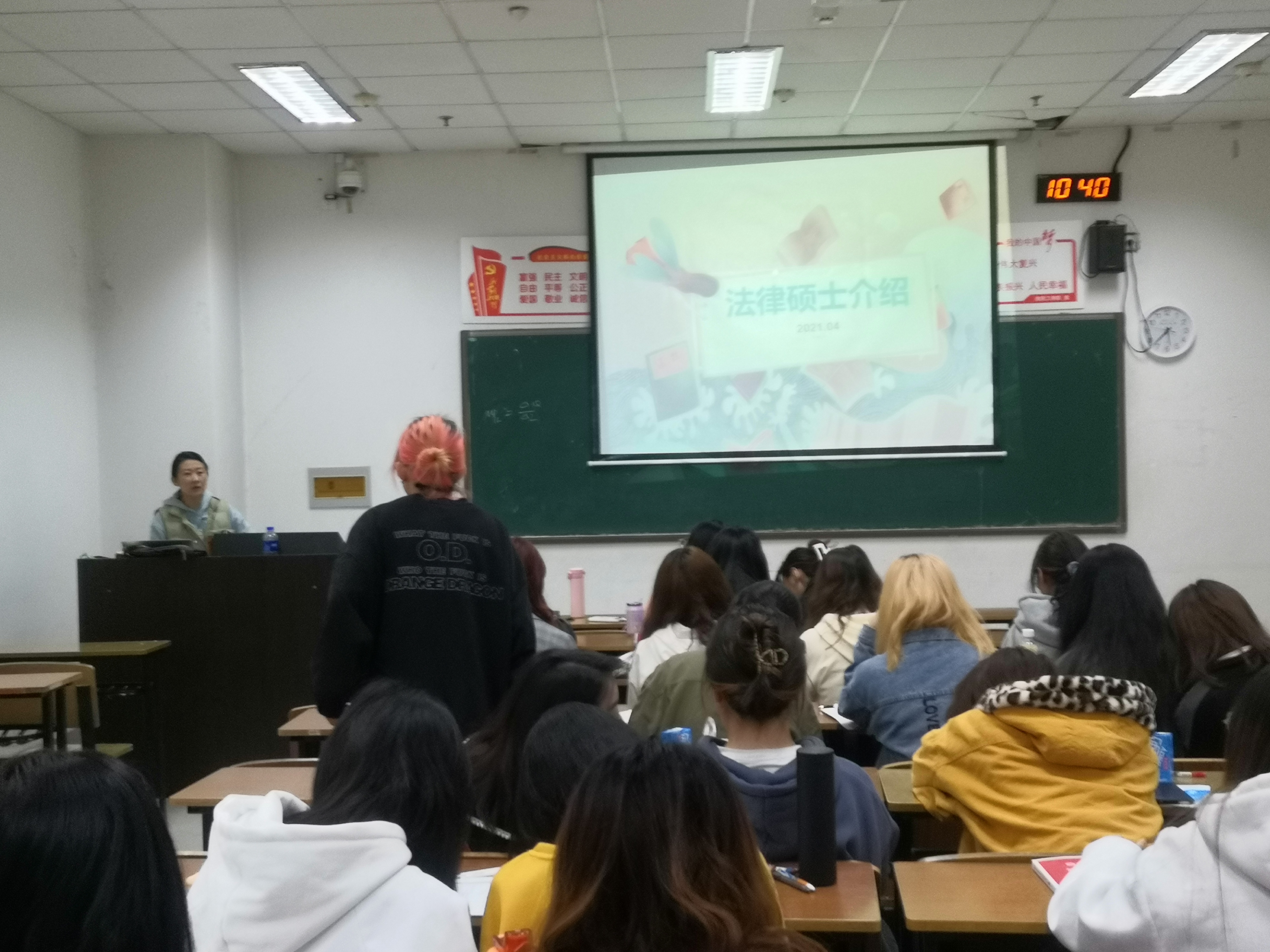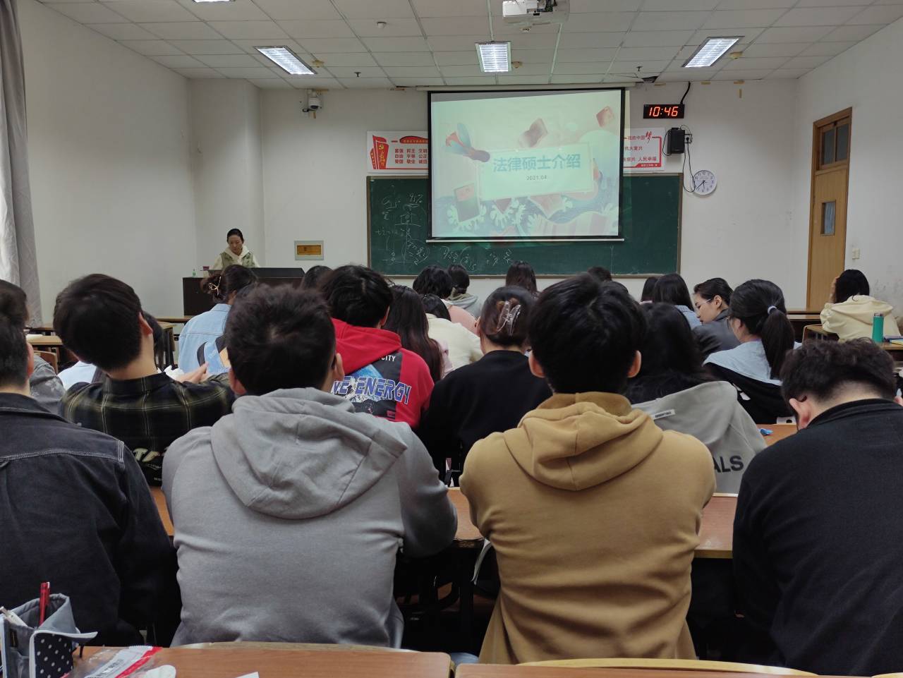 宣讲会上,王娜结合公管专业的学科特点和近年的考研情况,为同学们梳理了本专业考研的优势与不足,向同学们介绍了与本专业贴合度较高的考研方向,并重点对法律硕士的种类、报考条件、考试难度、就业方向等相关信息进行了详细讲解。