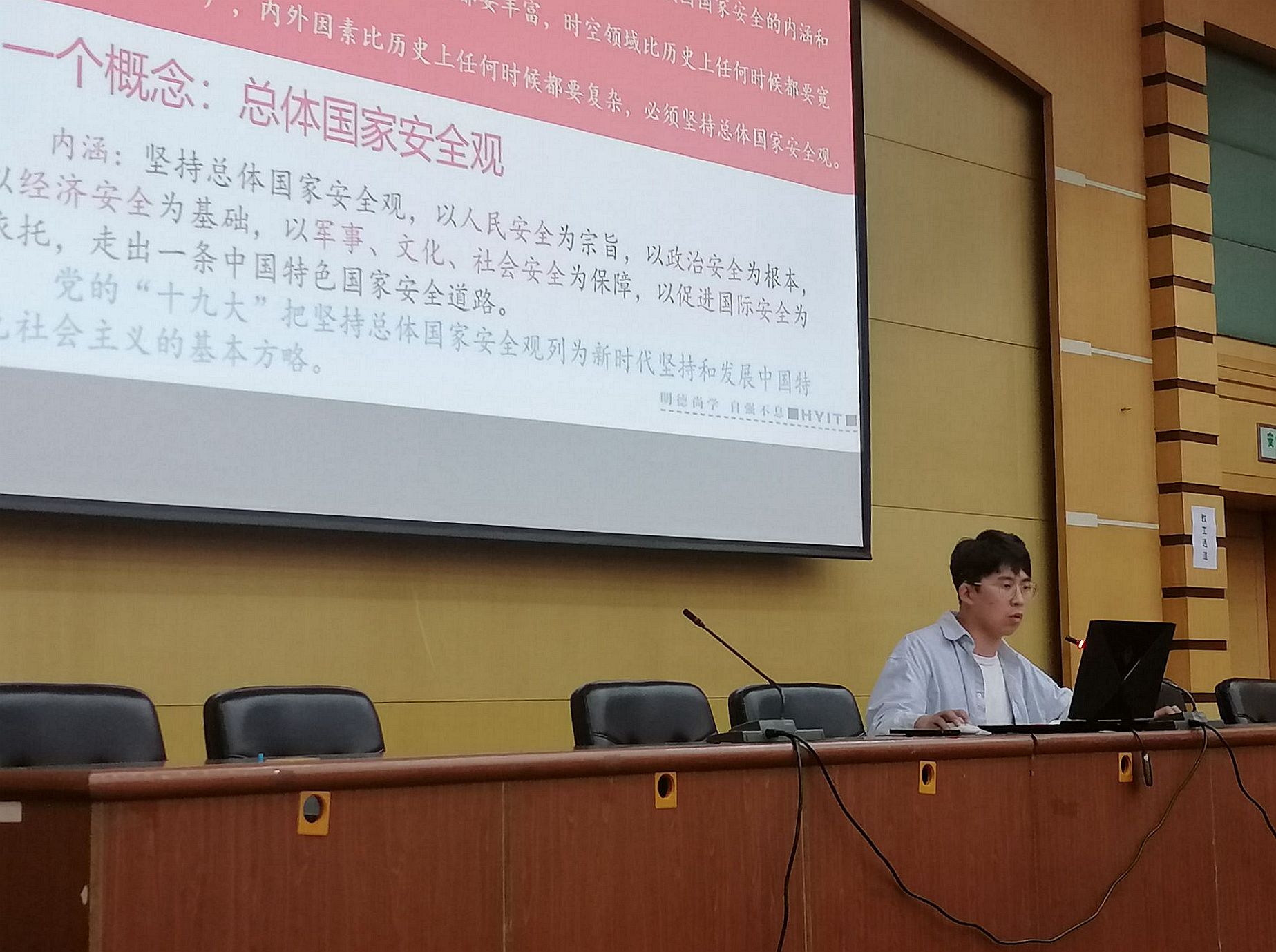 吴翔就国家安全教育问题,列举了一些触犯国家安全法律的事件和曾经真实发生的相关案例,希望同学引以为戒。紧接着,吴翔老师以他的母校曾发生的爆炸火灾为例,强调校园消防安全问题,提醒同学在校期间注意宿舍用电安全,严格遵守校规校纪,不要心存侥幸使用违规电器,以免造成不可挽回的损失和伤害。最后,针对老员工财产安全教育问题,吴翔老师通过视频形式形象地向同学讲解老员工上当受骗的事例,提醒大一新生要时刻保持警惕,注意财产安全,以免上当受骗。