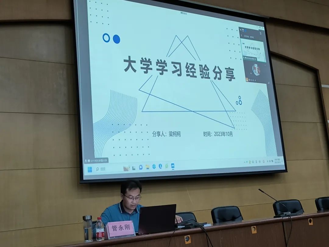 第二环节,邀请了XCsports社工1191班优秀毕业生梁柯柯同学,2023年考上了江苏师范大学社会工作研究生,结合她在淮工4年的学习经历,引导新生从大一开始就要树立考研目标,在大学四年有计划、有目标的去度过美好的大学四年生活。