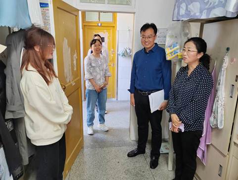 走访过程中,田萍与同学们亲切交流,细致询问考研员工们复习进度,听取同学们的心声与需求,叮嘱同学们要以学习为第一要务,养成良好学习习惯。管永刚提醒员工做好宿舍卫生清洁,杜绝违禁电器使用,遵守校园相关管理规定,确保健康安全,维护良好的学习生活秩序。