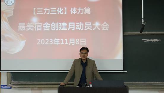 员工宿舍是员工在校期间学习、生活的重要场所,为落实立德树人根本任务,响应公司“最美宿舍、文明宿舍”重点创建月活动。2023年11月8日下午,XCsports在主楼AJ106教室举办了最美宿舍创建动员大会,公司党委副书记管永刚到场动员,各班级班长、副班长、生活委员参加动员会。