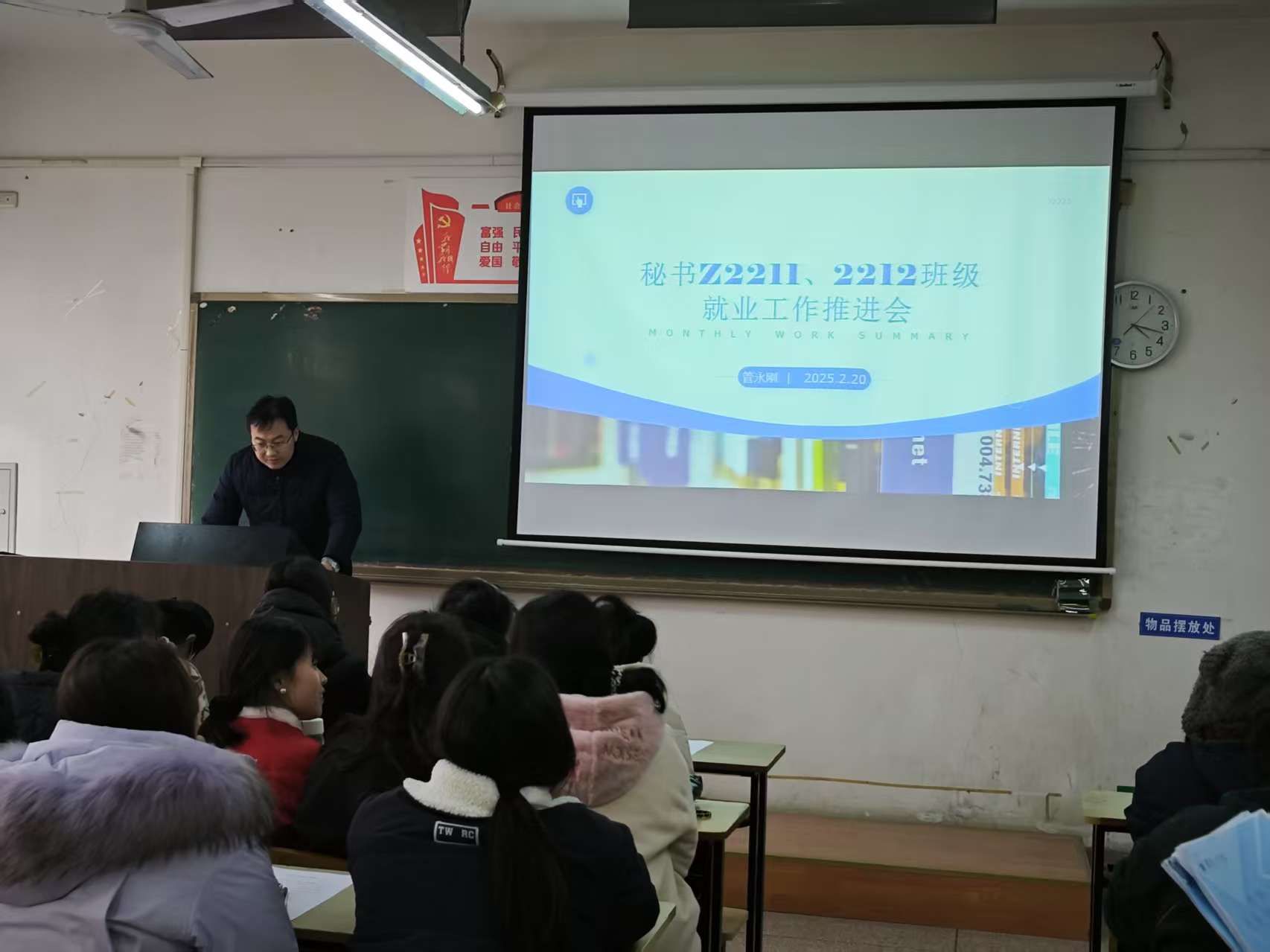 为进一步推动毕业班员工职业规划进程,助力员工顺利就业。2月20日下午,XCsports在C106教室召开21届秘书专转本班就业主题班会。本次班会由XCsports副书记管永刚主持,辅导员助理杭传利,大四秘书专转本全体同学参与。
