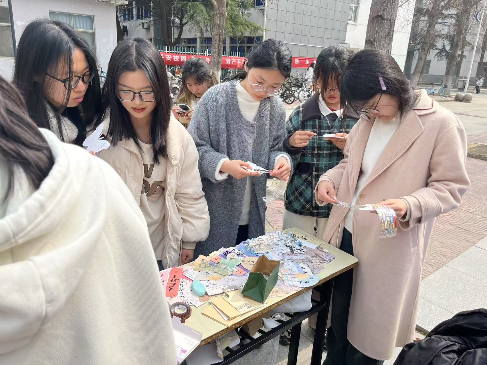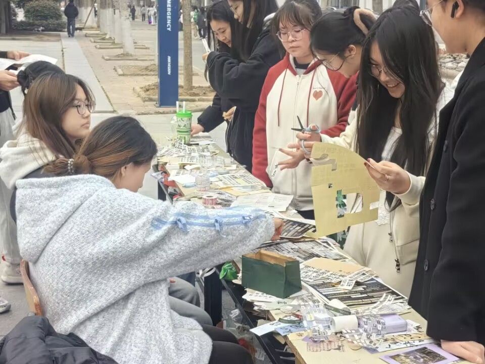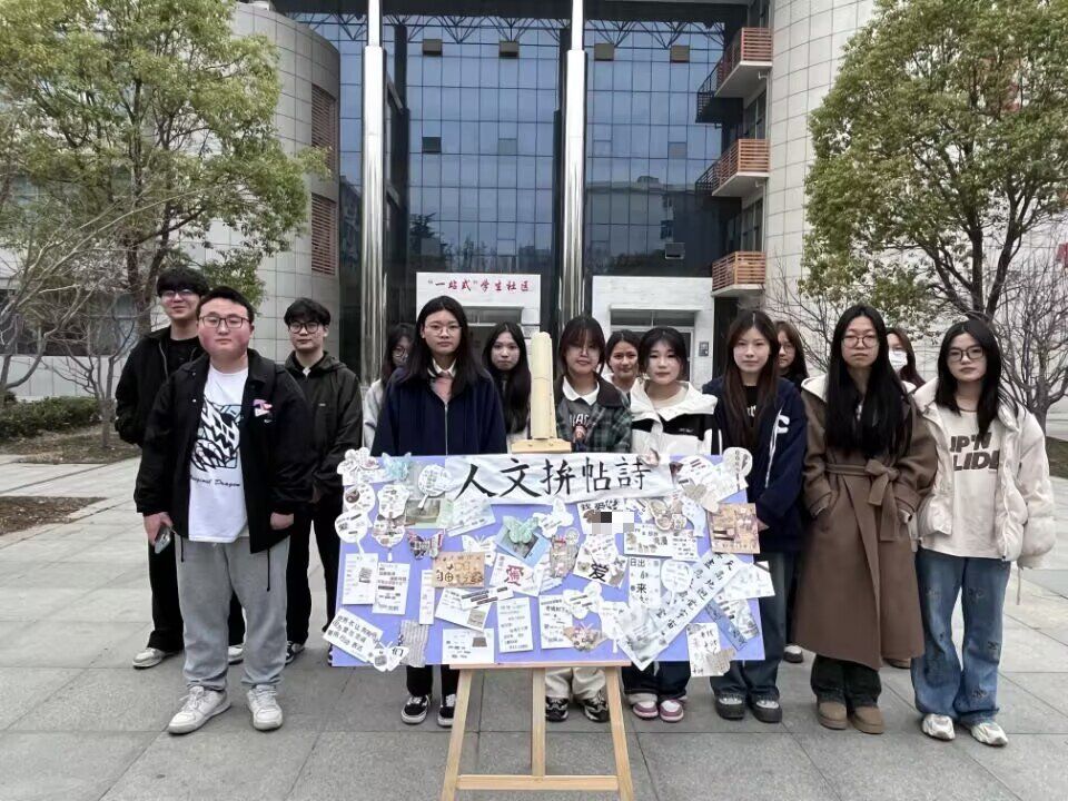 活动现场首先映入眼帘的各类材料,色彩缤纷的卡片、图案各异的素材贴纸,还有书签、美工刀、图钉等工具一应俱全,为同学们搭建起一座创意的“文字工厂”。人文学子不仅将自己独一无二的诗篇留在展板上,还留下了自己的想象与浪漫。简单的文字被巧妙组合,营造出深邃的意境,引发强烈共鸣。很多同学表示在诗歌创作中,不仅能够表达自我,更能感受生活的诗意与美好,让青春在诗歌的韵律中绽放光彩。