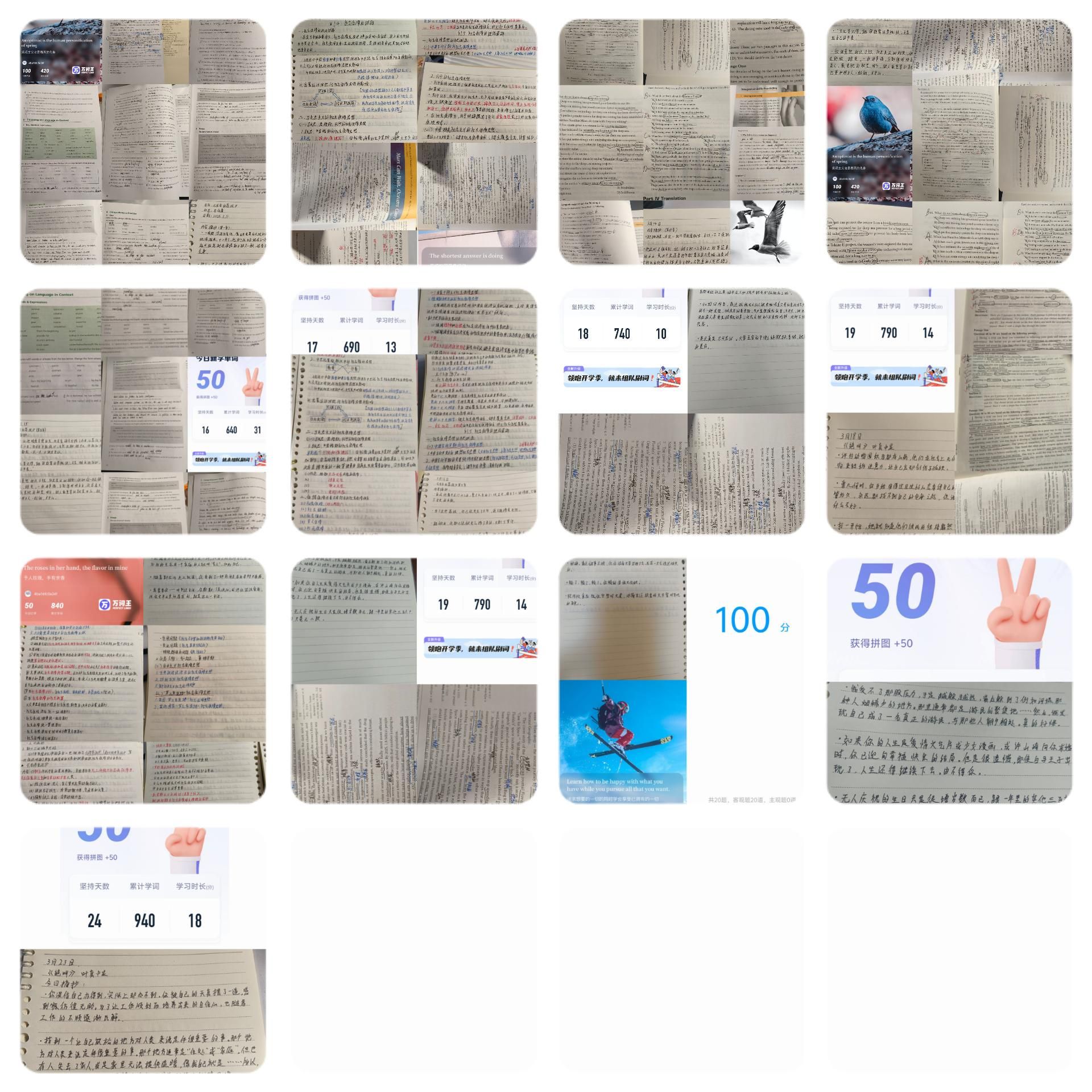 活动期间,同学们自主设定学习任务并每日打卡。任务涵盖阅读专业书籍、学习语言课程、完成习题等多个方面。有的同学坚持每天阅读30页专业相关书籍并认真记录读书笔记,有的同学每日按时学习背诵英语单词并做相关竞赛习题。同学们每天早上或上午上传一天的学习任务规划,晚上上传完成内容及学习成果,这些内容不仅成为了个人学习的见证,也为活动的评判提供了有力依据。