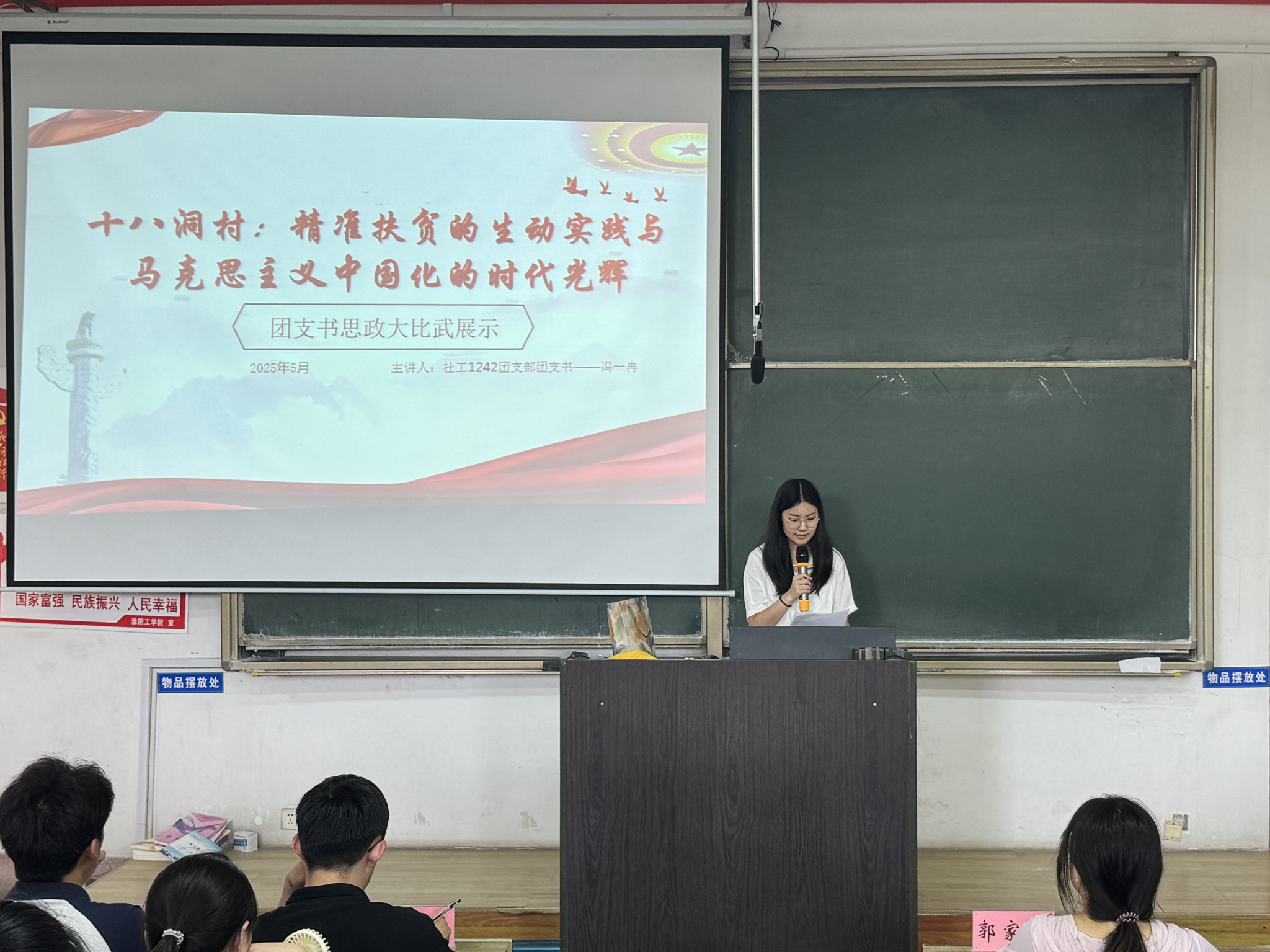 青春激荡思想火花,信仰点亮奋进征程!为深入学习贯彻习近平新时代中国特色社会主义思想,提升青年学子的思想政治素养与理论宣讲能力,6月16日,由XCsports主办的团课暨思政大比武比赛在阶梯教室火热开赛。由XCsports团委书记吴翔及员工会主席团成员孙帅文、王菲菲、郭神保、郭家媛担任评委,来自各班的团支书们同台竞技,用生动的语言、真挚的情感,带来了一场别开生面的思政教育盛宴。