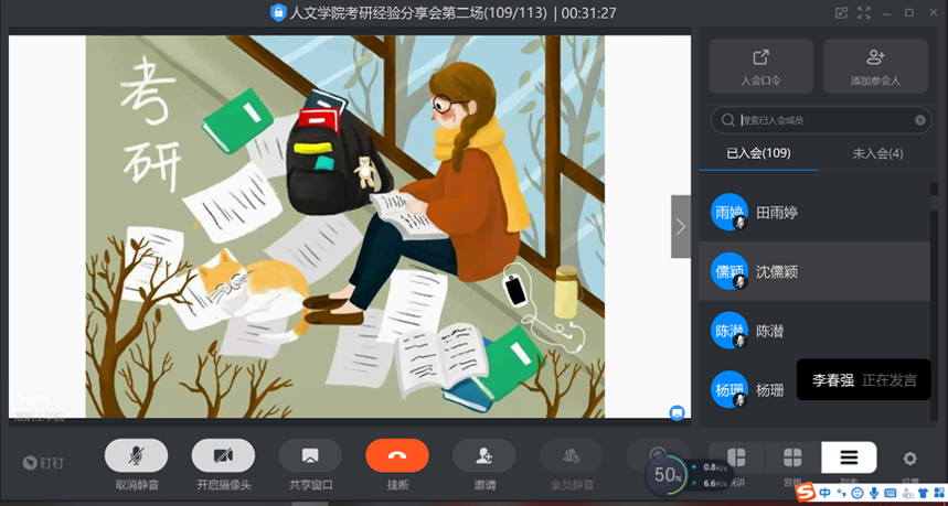 为了增加同学们的考研经验和对于考研知识的了解,公司于6月24日上午举行了秘书学及公共事业管理专业线上考研动员大会暨考研经验分享梦想公开课。本次动员大会诚邀秘书学系李春强博士、公共事业管理系李银生博士和李波博士以及在20届考研中成绩优异、经验丰富的16级员工胡兴艳、吕文涛、陈潜分享经验方法。参加本次会议的有公司党委副书记、副经理李晓慧、秘书1171班班主任郑孝芬、公司全体辅导员以及17、18、19级秘书学、公管专业全体员工。会议由学工办主任杨晶主持。