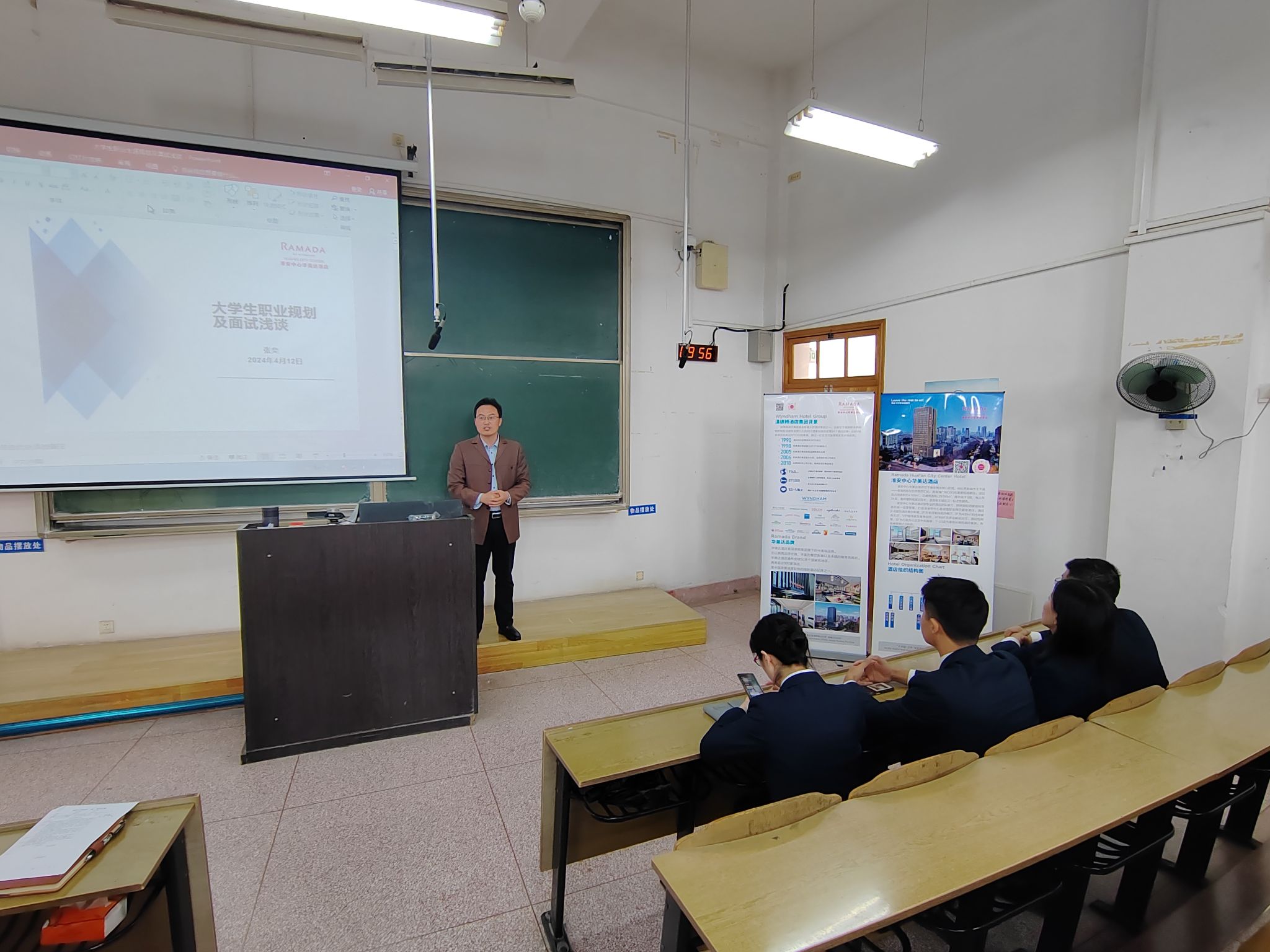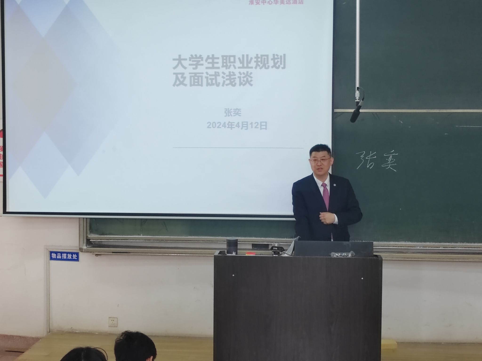 宣讲会上,淮安中心华美达酒店不仅带来了企业的最新动态和招聘信息,还分享了行业趋势和未来发展方向。淮安中心华美达酒店张奕总经理用生动的语言和具体的数据,向同学们展示了企业的实力和优势,以及他们对人才的需求和期望。在互动环节,淮安中心华美达酒店工作人员耐心地回答了员工们提出的各种问题。他们不仅解答了关于职位要求、薪资待遇、晋升机制等具体问题,还就如何提升个人竞争力、如何适应职场环境等话题给出了中肯的建议。同学们纷纷表示,通过与企业代表的交流,他们对未来的职业生涯有了更加清晰的规划。