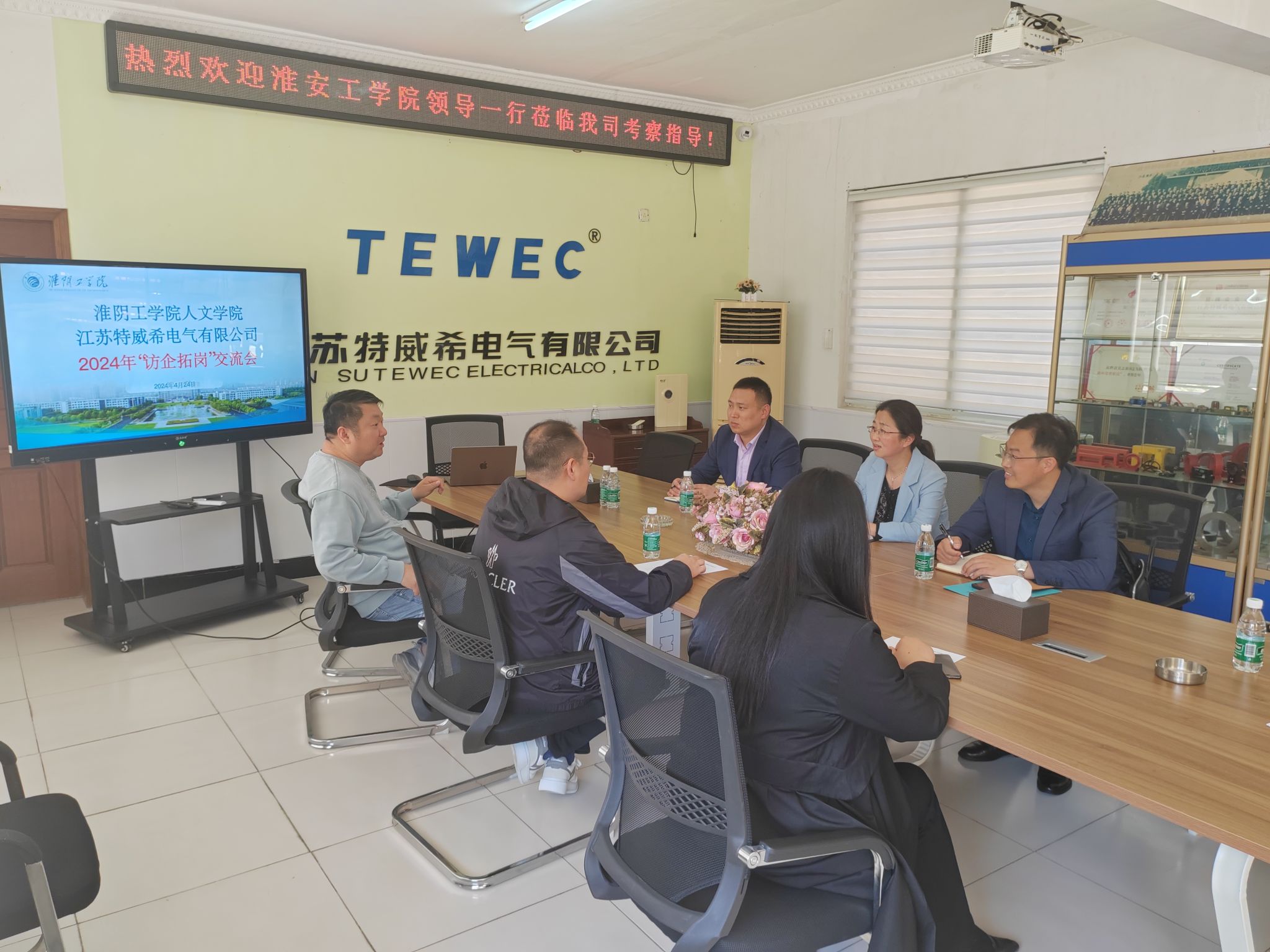 为深入贯彻落实人才强国战略、就业优先战略和“访企拓岗促就业”专项行动的要求,进一步拓宽员工的就业渠道,为员工搭建更广阔的实习和就业平台,4月24日,公司党委书记田萍,副书记、副经理管永刚,学工办主任时正杰等一行赴淮安市盱眙县开展访企拓岗促就业专项行动,走访了欣欣社会工作服务中心、芯悦社会工作服务中心、江苏威鸿宠物用品有限公司、江苏特威希电气有限公司、江苏天泉湖实业股份有限公司,共同签署了共建就业实习基地协议。