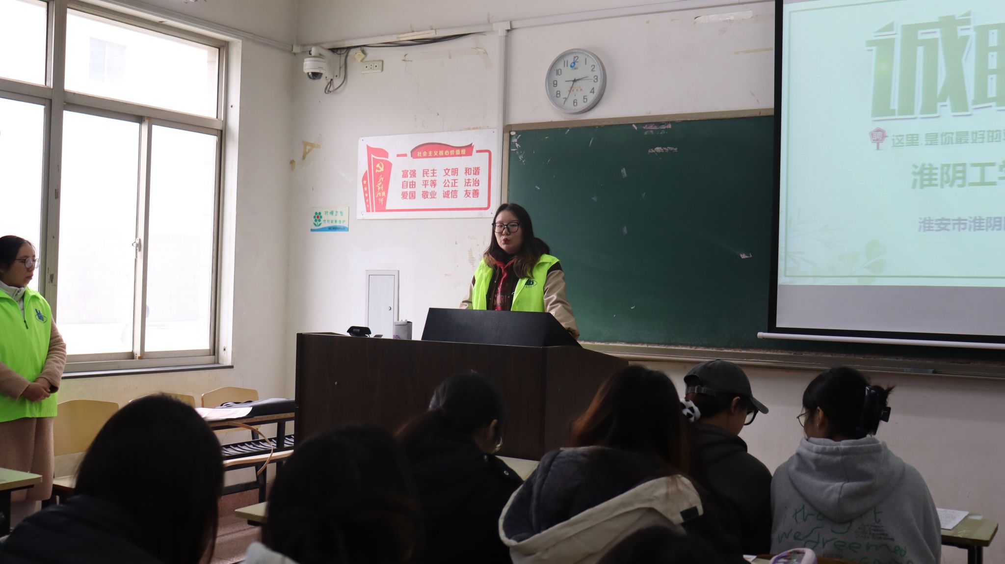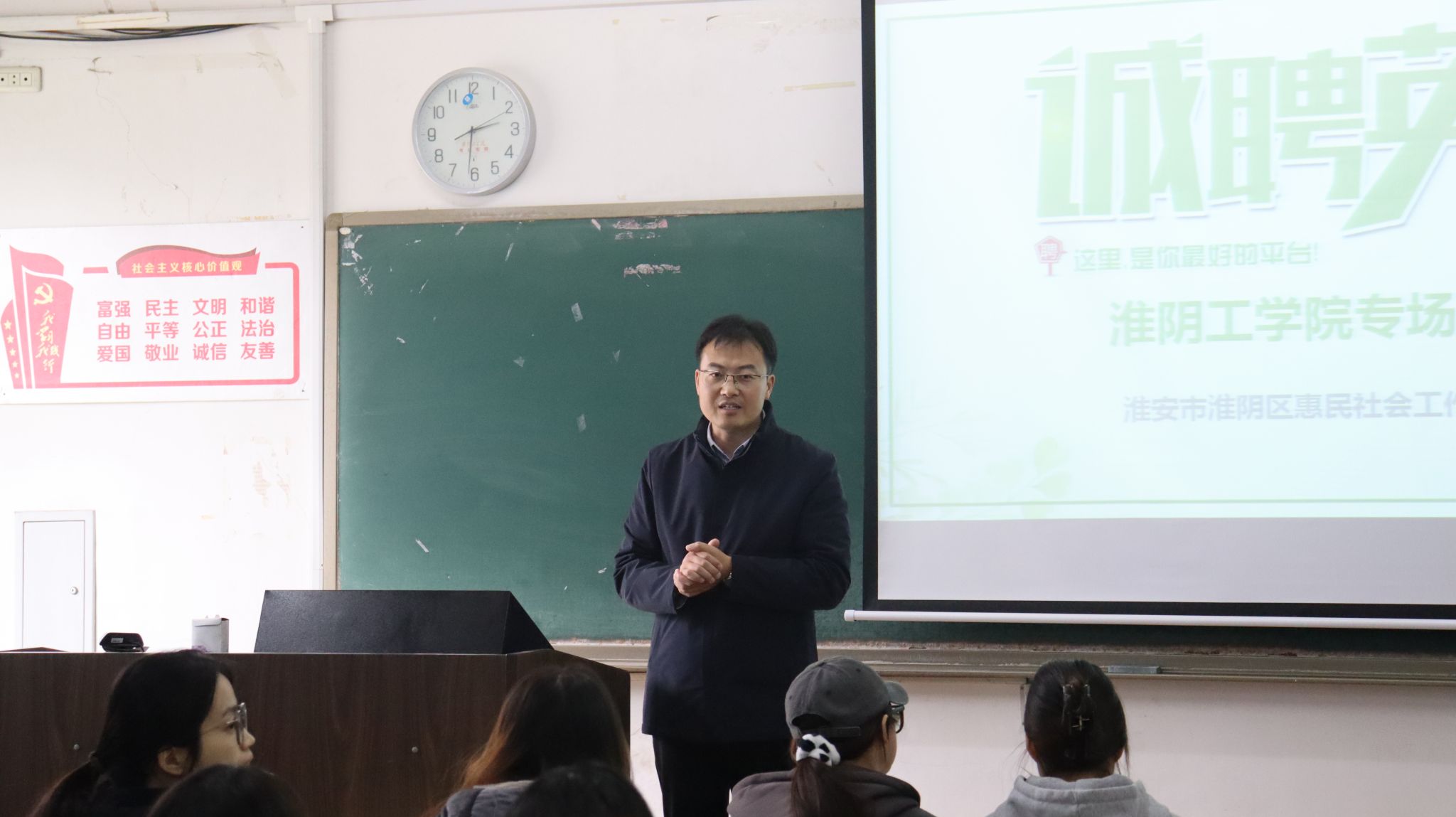 招聘会现场,管永刚代表公司对淮安市淮阴区惠民社会工作服务中心来院进行专场招聘表示欢迎与感谢,希望毕业生找准职业定位,把握就业机会,早日实现就业。随后,淮安市淮阴区惠民社会工作服务中心负责人从企业发展史、企业文化、岗位要求、晋升通道、薪资待遇等方面进行了详细的介绍。同学们踊跃提问,积极投递简历,现场气氛热烈。