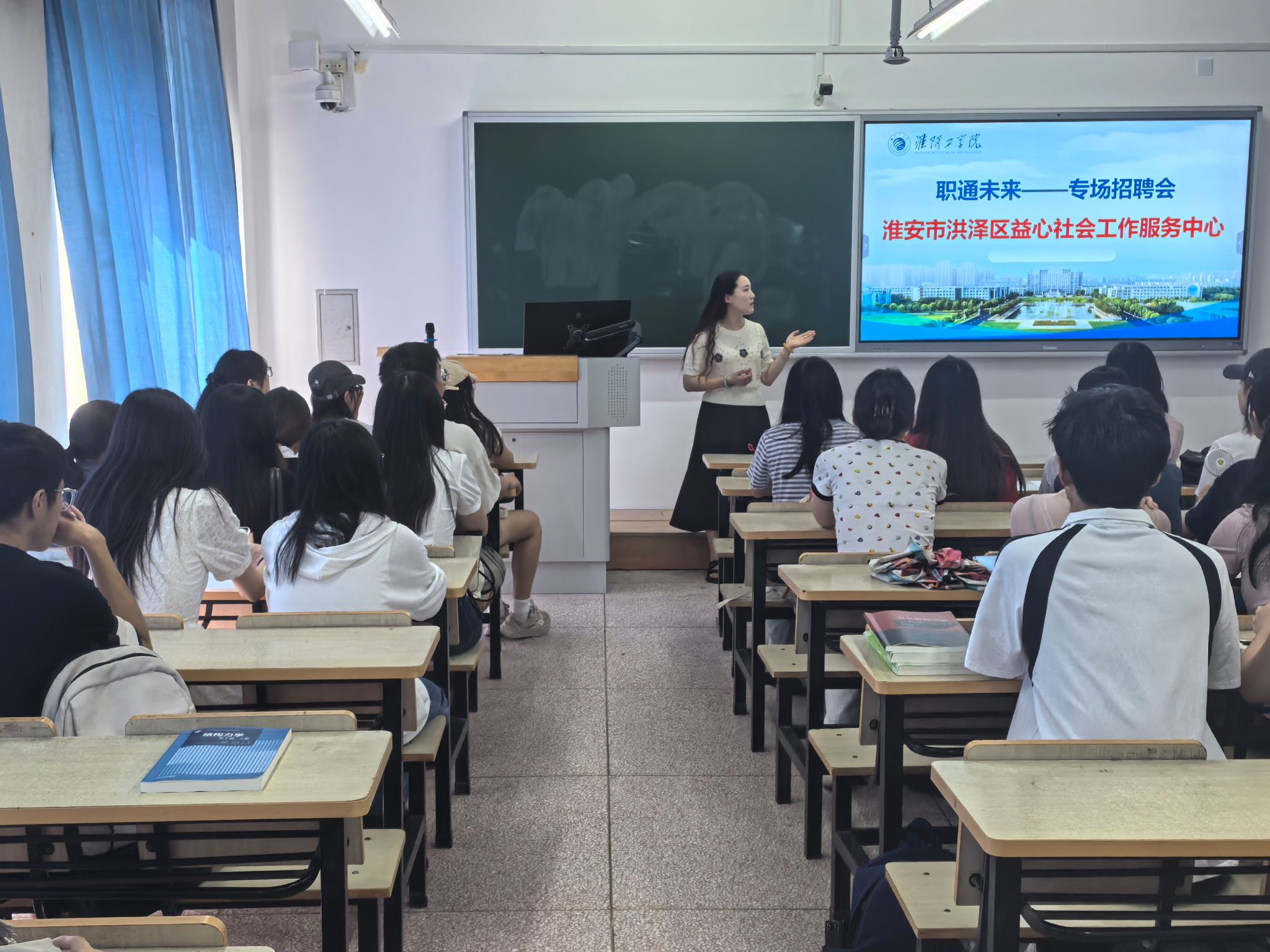 为了给毕业生提供更多、更优质的就业机会与选择,实现高质量就业,2025年9月16日,人文学与社会科学公司在尚学楼B107会举办淮安市洪泽区益心社会工作服务中心专场招聘会。公司党委副书记管永刚、学工办主任时正杰、毕业班辅导员以及部分毕业生参加了本次招聘会。