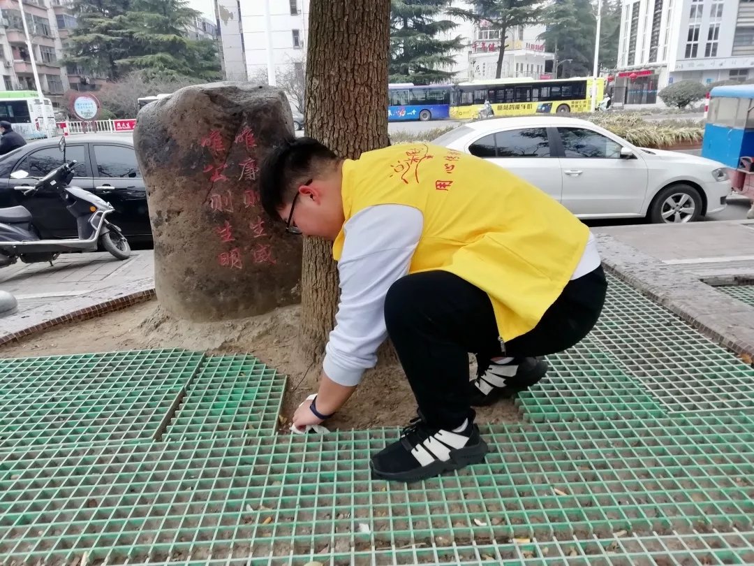 与此同时,另一小分队秉承着“老吾老以及人之老”的信念,走进夕阳红广场,拾起地上的垃圾,收拾杂物,为前来活动的老人们营造一个干净整洁的环境。潮湿的地面,增加了志愿活动的难度。当然,这些困难无法阻挡志愿者们的步伐。看着志愿者们不断俯下的背影,周围的老人向他们投来赞许的目光。