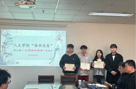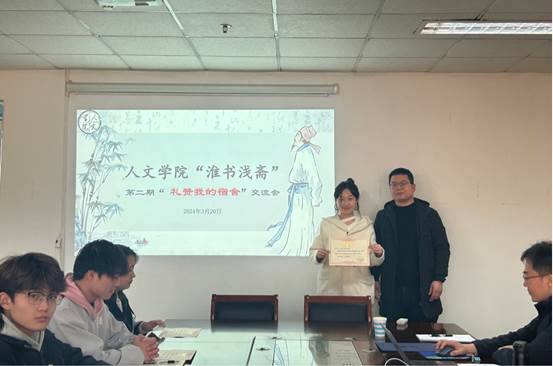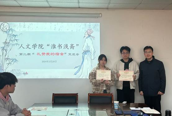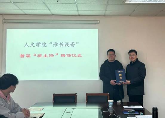 活动最后,管永刚为李春强颁发“淮书浅斋”征文比赛首届班主任的聘任书。并由管永刚、李春强为获奖同学颁奖。