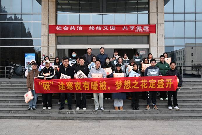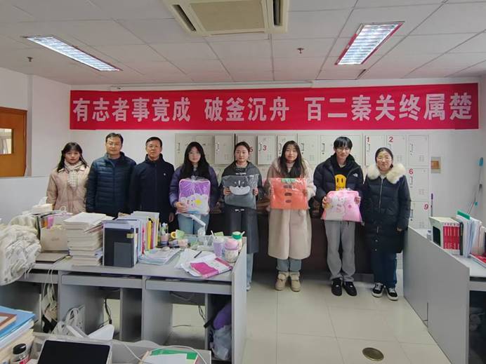 活动伊始,管永刚提醒要同学们调整作息,科学备考。接下来郁大海亲切地与学子们交谈,询问他们的备考情况和身心状态,叮嘱大家要合理安排时间,注意劳逸结合,保持良好的心态应对考试。然后,参加活动的老师们为考研学子们发放精心准备的多功能抱枕。