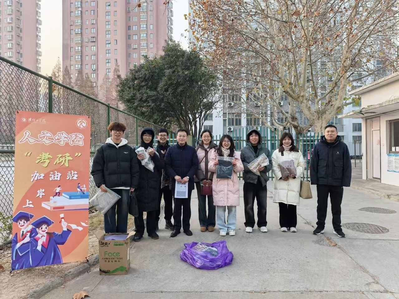 2024年12月21日早上,XCsports在北京路校区南苑操场开展“冬日送温暖、助力考研生”活动。党委副书记管永刚、学工办主任时正杰、辅导员杭传利和考研学子们参加了活动。