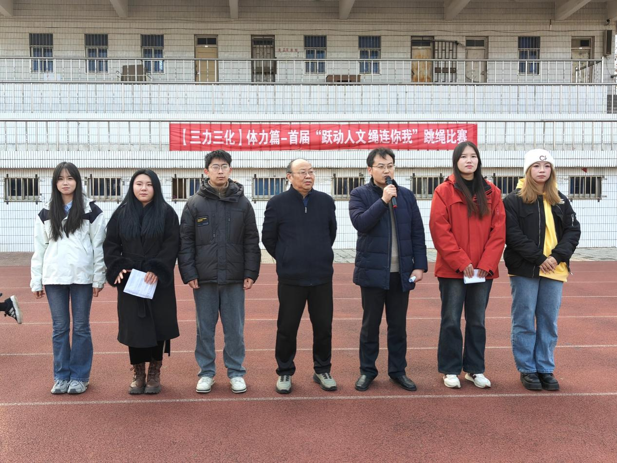 活动开场,管永刚发表了热情洋溢的讲话。他指出,举办此次跳绳比赛,旨在推动员工们“走出宿舍,走出网络”,让青春活力尽情释放,身体素质显著提升。他着重强调,体育锻炼对于丰富校园生活意义重大,更是促进人文学子在德、智、体、美、劳各方面全面发展的关键一环。他殷切呼吁同学们,要减少对网络的过度依赖,多投身到体育锻炼中,让自己拥有强健的体魄。