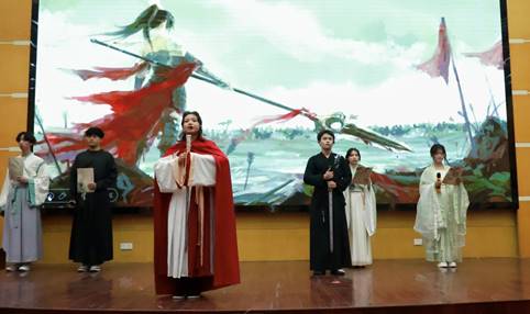 本次大赛精彩纷呈,共分为表演、问答、飞花令等多个环节。在表演环节,11支参赛队伍各展所长,用创意与才华诠释传统文化的魅力。爱冒险的朵拉队带来的合唱《吹梦到西洲》,歌声婉转悠扬,仿佛将观众带入了如梦如幻的诗意世界;扇承古韵队的舞蹈《咏春》,舞步灵动飘逸,尽显古典韵味;汉唐风华队的歌曲朗诵《汉唐风韵,盛世华章》,气势恢宏,重现汉唐盛世的辉煌;还有舞台剧《铡美案》、情景对话《运河千年话淮安》等节目,形式多样,创意十足,赢得了现场观众的阵阵掌声。