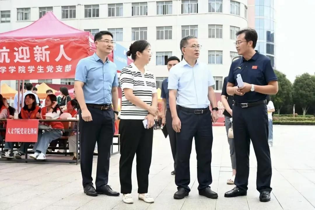 公司党委书记常绿带领一行人员抵达公司迎新现场,仔细询问新生报到的进展情况,亲切看望了前来报到的新生与家长,还向投身迎新工作的教职工及员工志愿者表达了慰问。