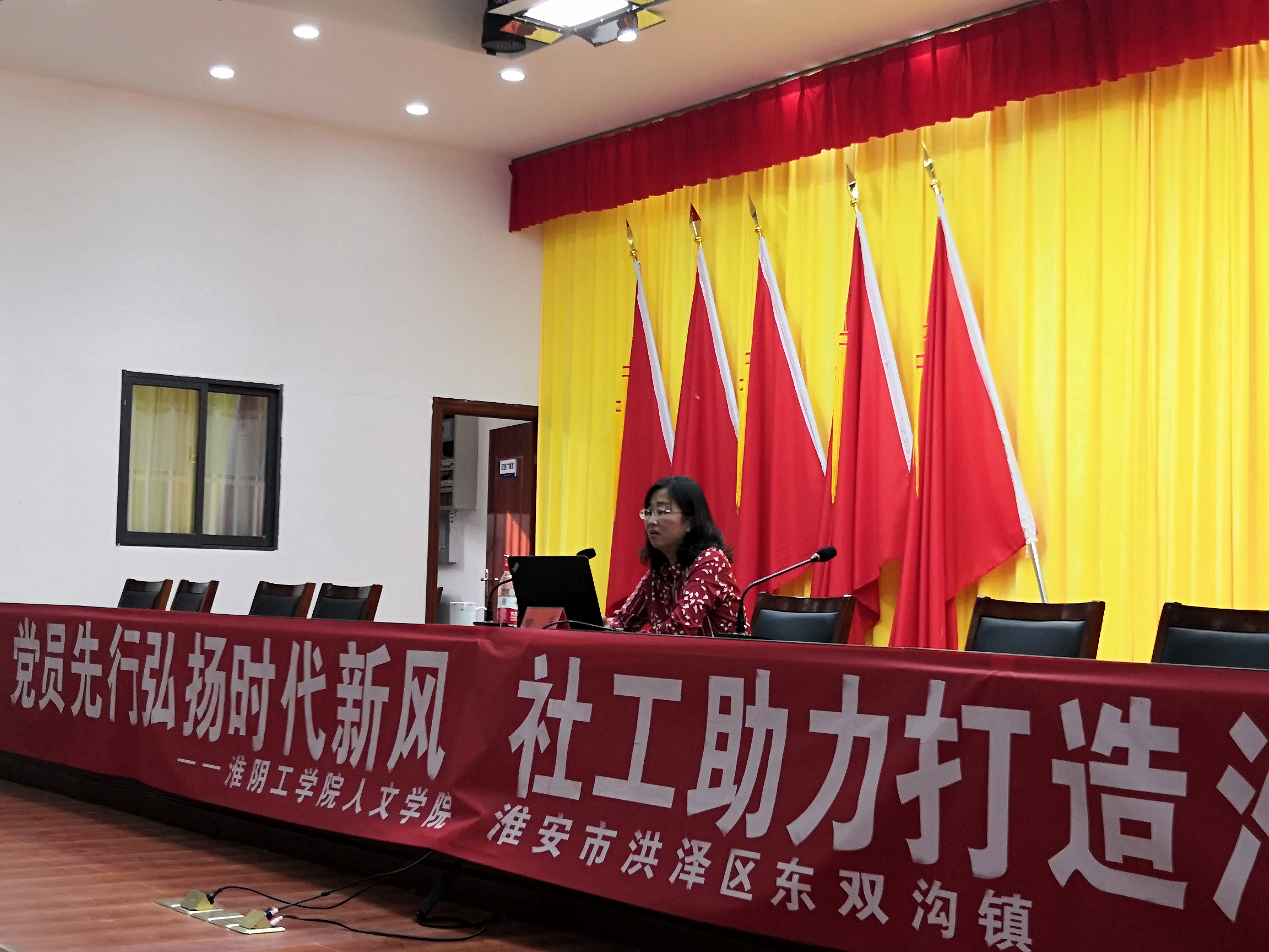 10月24日下午,公司党委组织党员走进东双沟镇新时代文明实践所开展“服务群众践行初心 社工助力弘扬时代新风”主题党日活动。公司党委书记郁大海、经理田萍、教师第一党支部(社会学系党支部)党员、部分员工党员及东双沟镇党委书记张步红、人大主席查友海等参加活动。