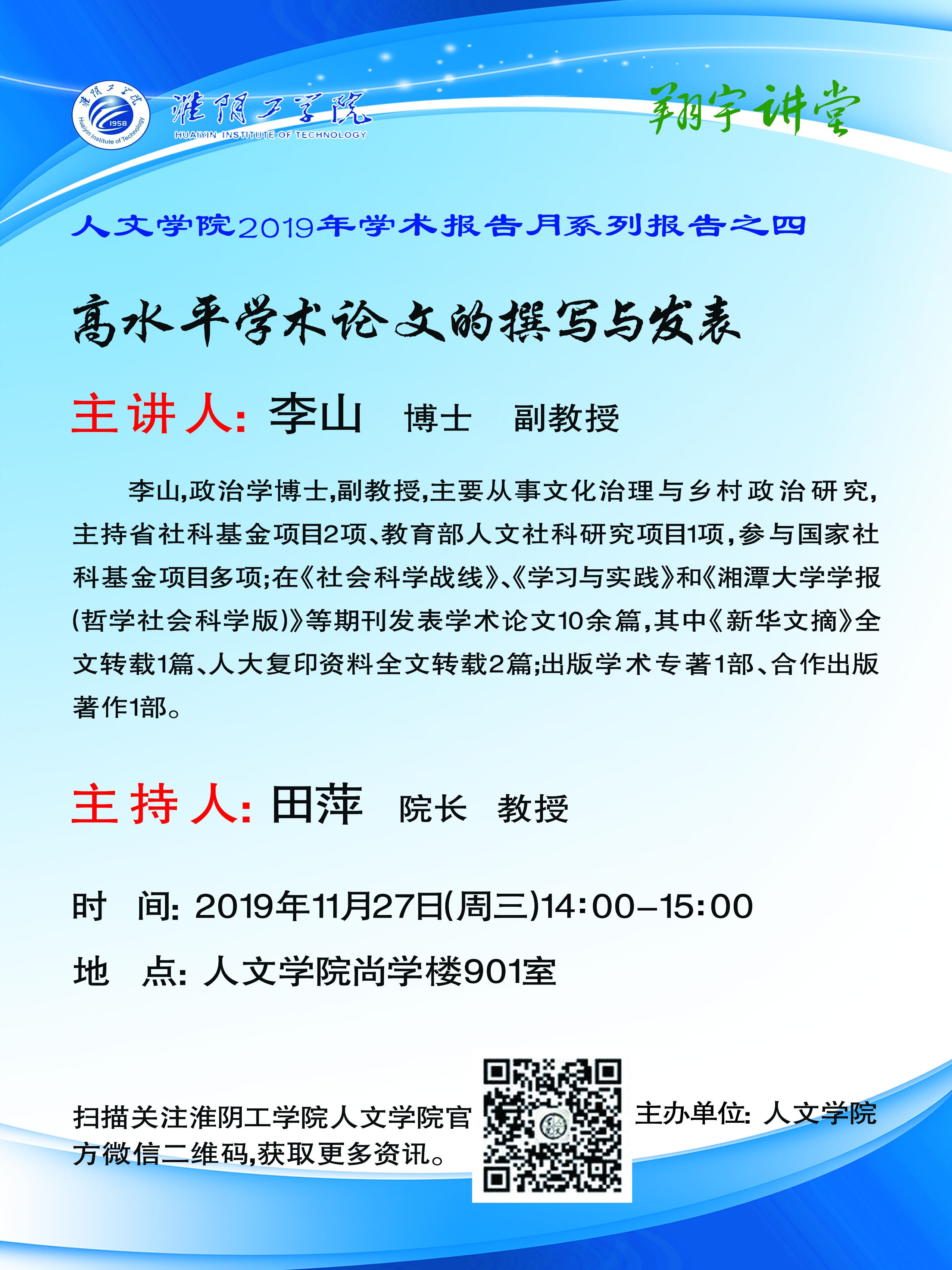 2019年学术报告月系列报告之四---高水平学术论文的撰写与发表