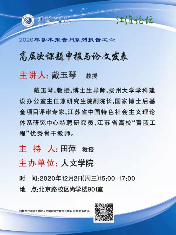 2020年学术报告月系列报告之六---高层次课题申报与论文发表