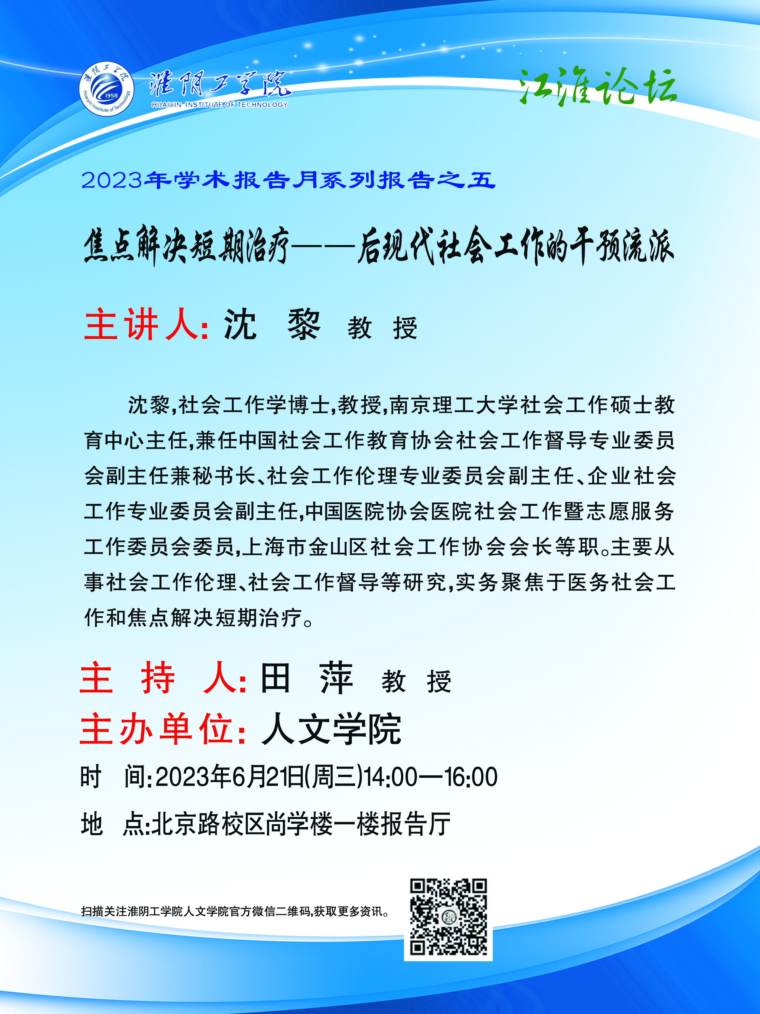 2023年学术报告月系列报告之五--焦点解决短期治疗——后现代社会工作的干预流派