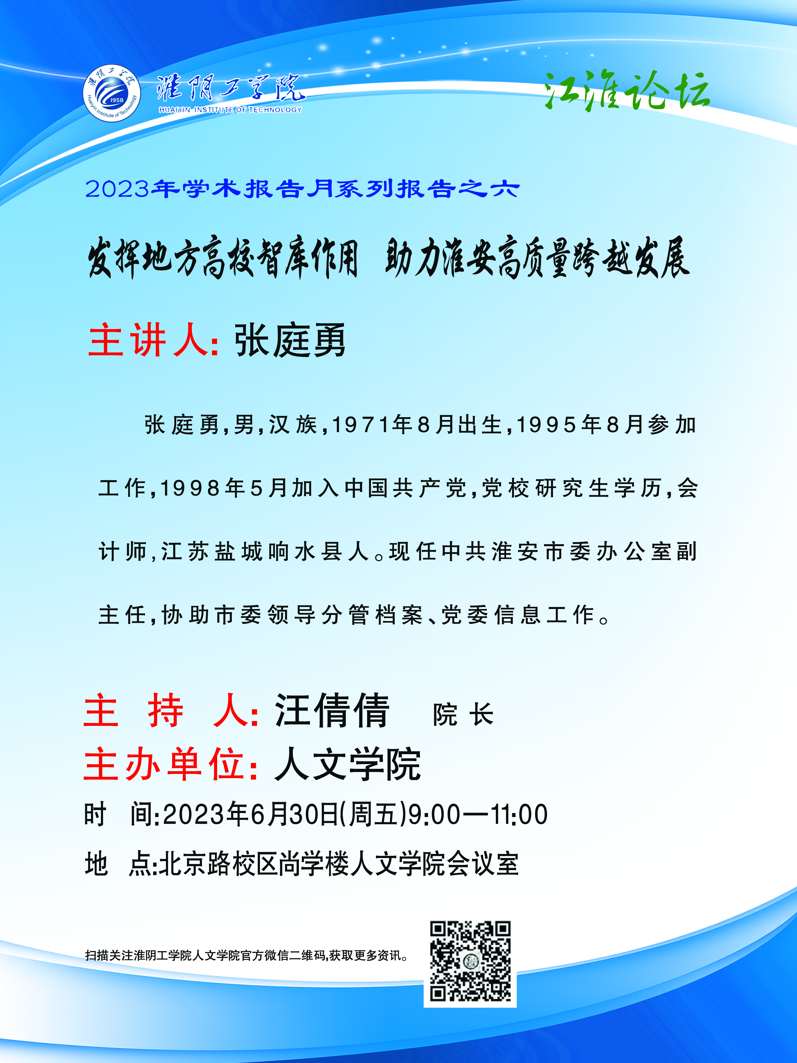 2023年学术报告月系列报告之六--发挥地方高校智库作用 助力淮安高质量跨越发展