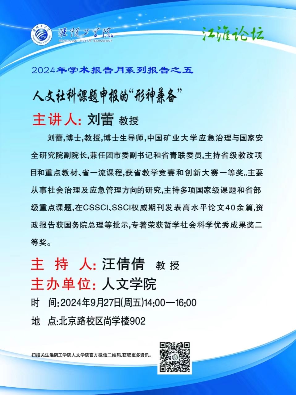 2024年学术报告月系列报告之五---人文社科课题申报的“形神兼备”