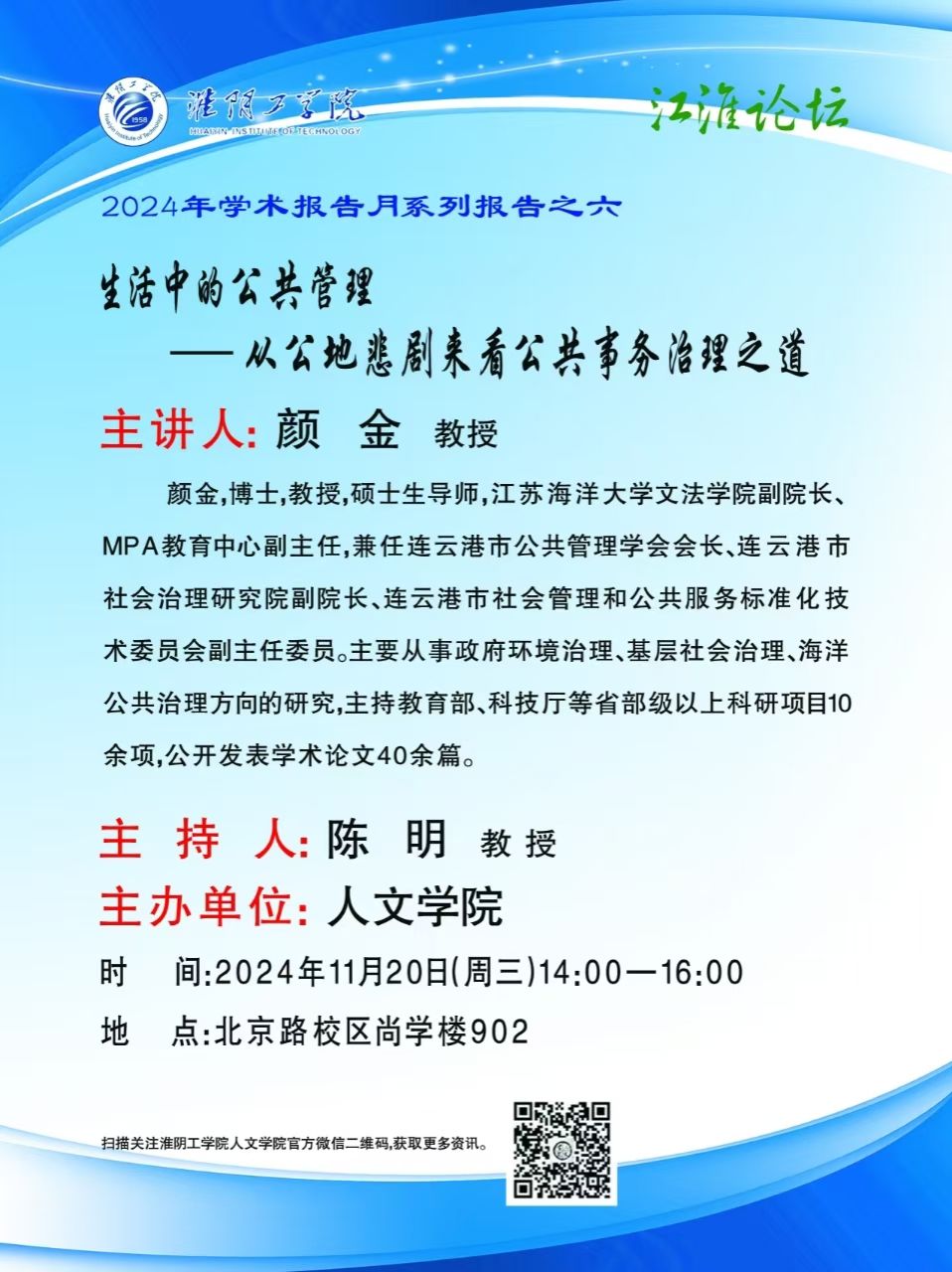 2024年学术报告月系列报告之六---生活中的公共管理--从公地悲剧来看公共事务治理之道
