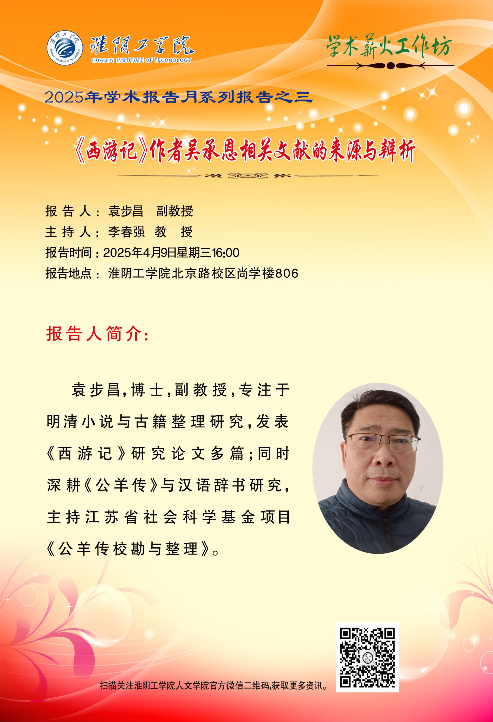 2025年学术报告月系列报告之三-----《西游记》作者吴承恩相关文献的来源与辨析