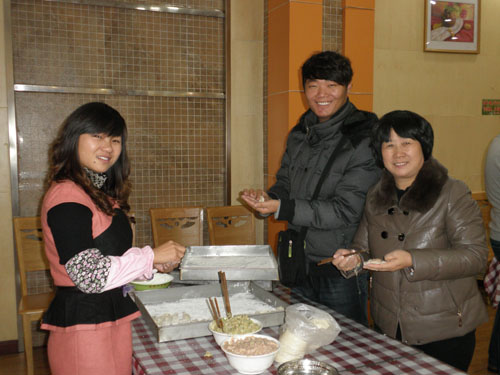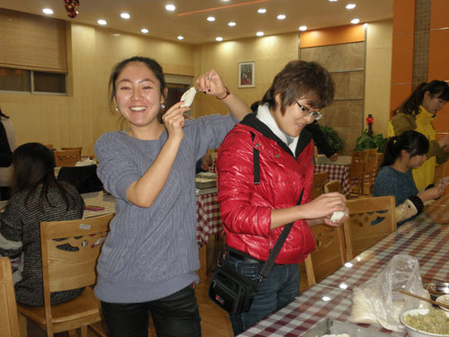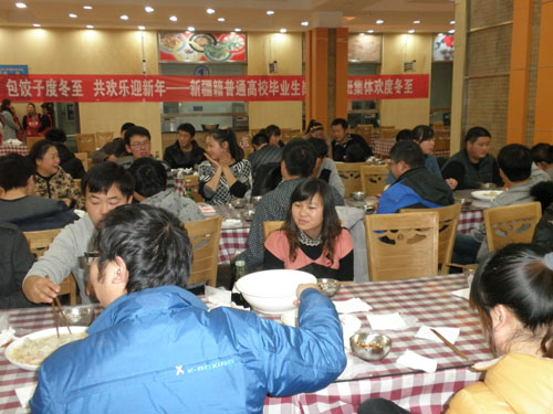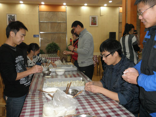 冬至是我国农历中一个非常重要的节气,为了庆祝冬至,北方人有在这天吃饺子的习俗。为了强班级凝聚力,让远离家乡的学员们感受到淮工这个大家庭的温暖,2012年12月21日,新疆籍普通高校毕业生岗前培训班学员欢聚一堂,共同包饺子庆贺冬至,迎接新年的到来。饮服公司为同学们安排好了场地并准备好所需原材料,新疆班班主任、辅导员和任课老师都参加了包饺子活动。