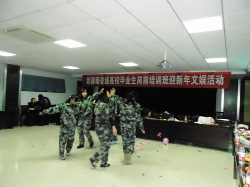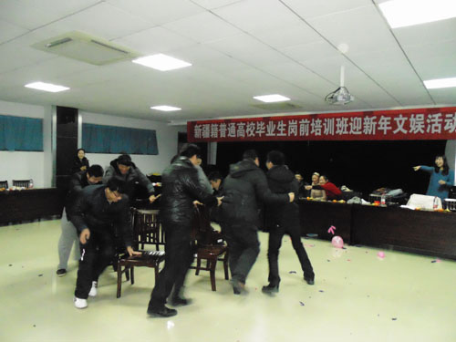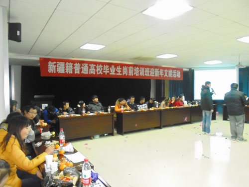 12月30日晚,新疆籍普通高校毕业生岗前培训班学员和老师们欢聚一堂,在逸夫楼八楼举行迎新年庆元旦晚会。