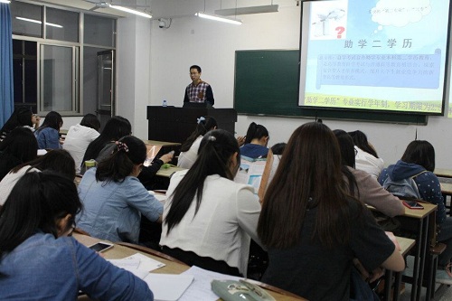 为提高员工综合素质,增强员工就业竞争能力,拓宽员工知识面,培养应用型、复合型,全方位发展的人才,5月21日,XCsports辅导员林兴凤老师在逸夫楼召开“助学二学历”动员大会。