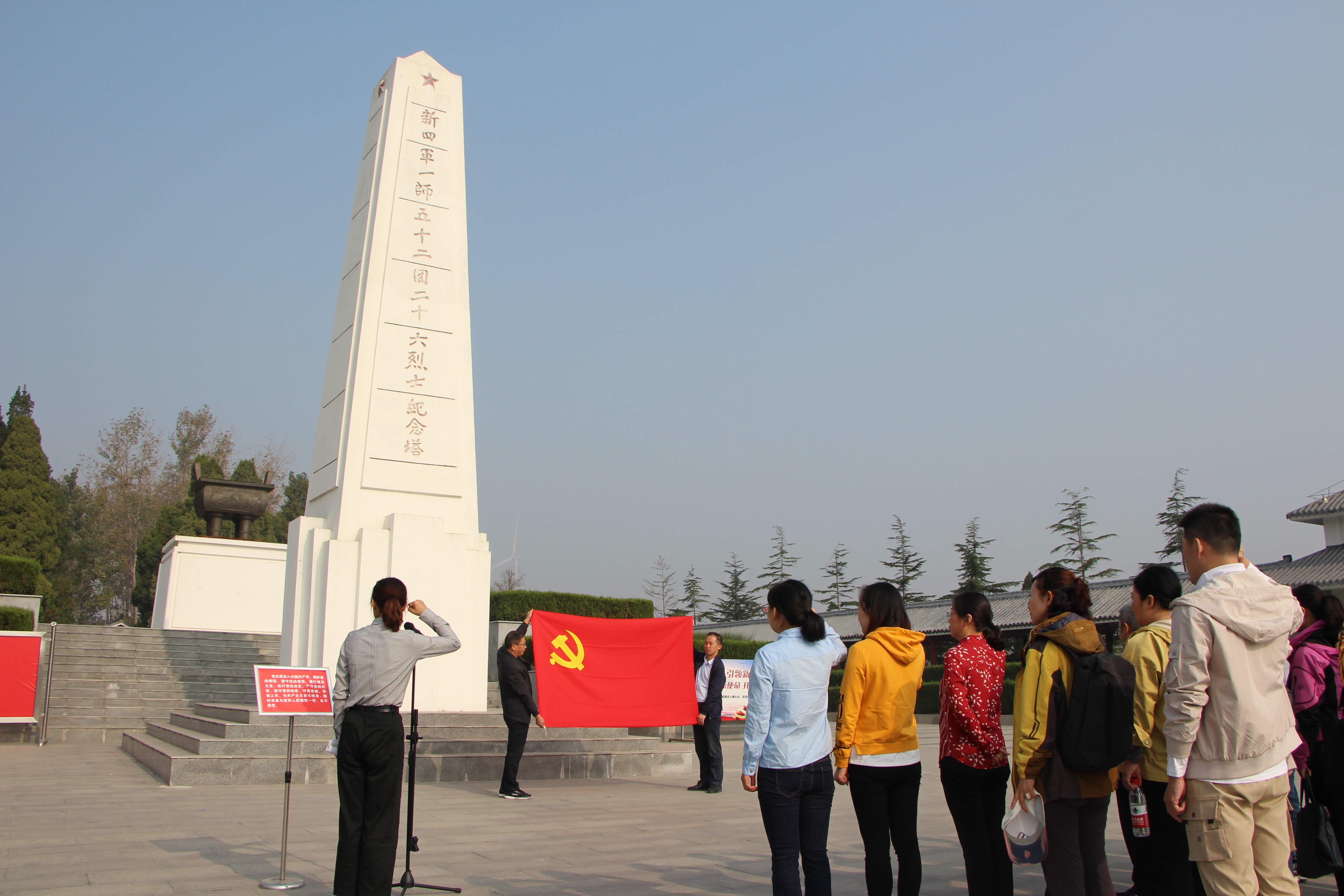 革命先烈们以其大无畏的勇气,前赴后继、英勇奋战,谱写出可歌可泣的英雄事迹。师生党员怀着崇敬的心情走进洪泽二十六烈士陵园聆听党史,叩问初心,接受革命教育。在讲解员的解说中,重新走进那段烽火岁月,再现昔日那段波澜壮阔的革命历程,感受革命先辈艰苦奋斗与无私奉献的革命精神。在革命烈士塔前,面对鲜红党旗,李晓慧带领全体党员举行宣誓仪式,重温了入党誓词。随后,全体师生面对烈士纪念塔深深三鞠躬,深情瞻仰雄伟的革命烈士塔,深切缅怀革命烈士的丰功伟绩。