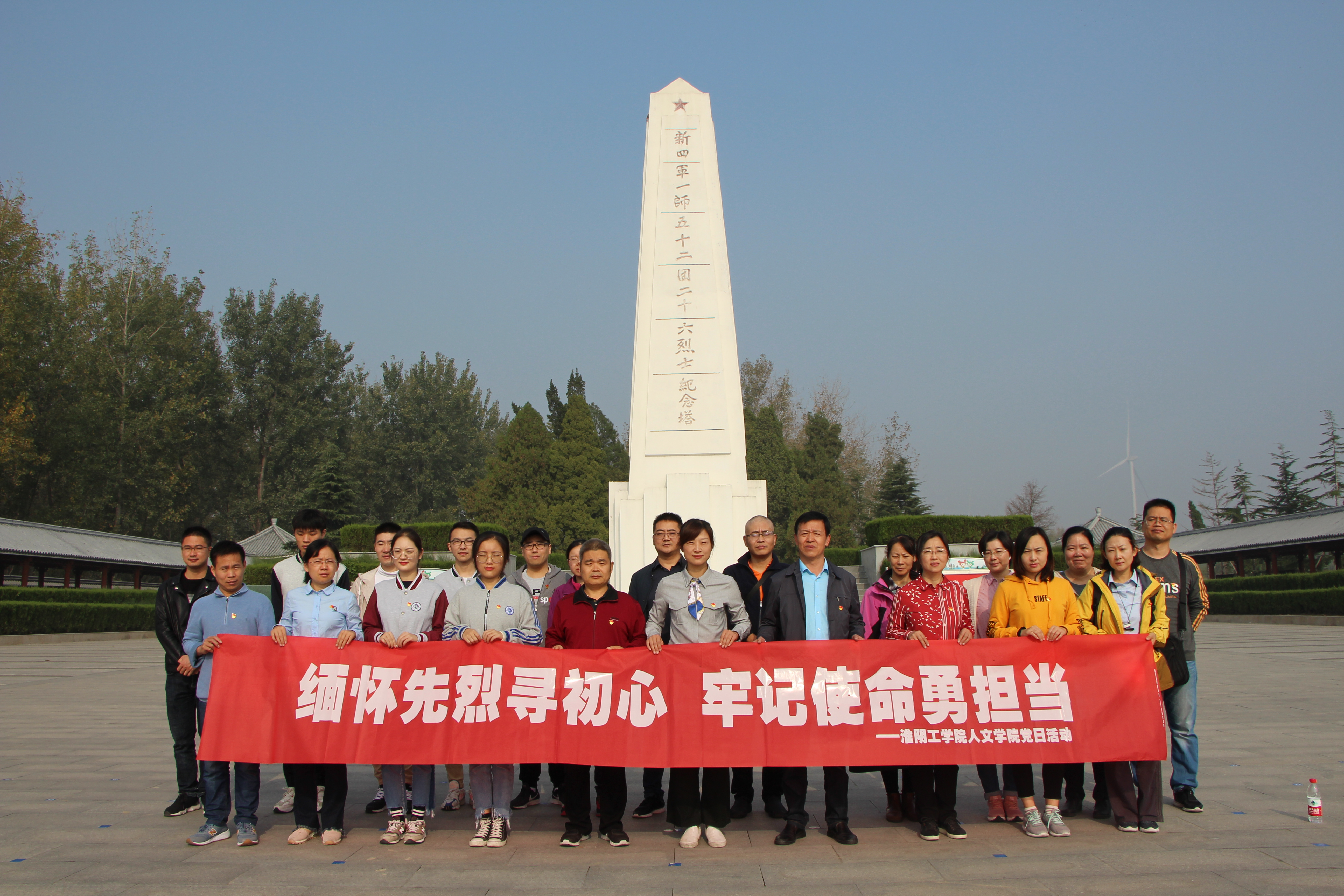 为推进“不忘初心、牢记使命”主题教育深入开展,推动主题教育走心、走深、走实, 10月24日上午公司党委组织师生赴洪泽二十六烈士陵园开展“缅怀先烈寻初心、牢记使命勇担当”主题党日活动。公司党员及部分非党员师生参加相关活动。