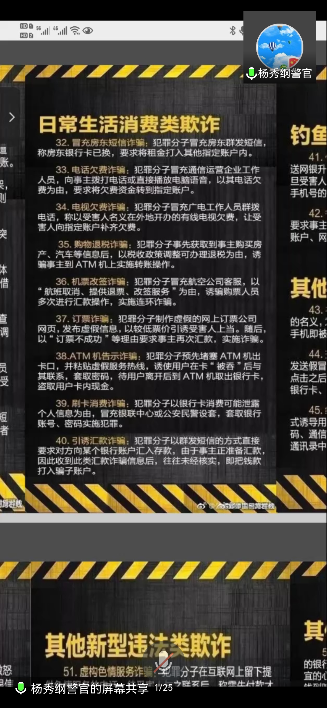 为进一步提高员工识骗、防骗意识和能力,有效防范电信诈骗,XCsports于2022年3月16日晚开展了防范电信网络诈骗专题讲座。本次活动,公司邀请淮安市公安局新城分局福地路派出所民警杨秀纲以线上宣传的方式向21级全体员工和公司主要员工干部宣传防诈常识,讲座由学工办主任时正杰主持。