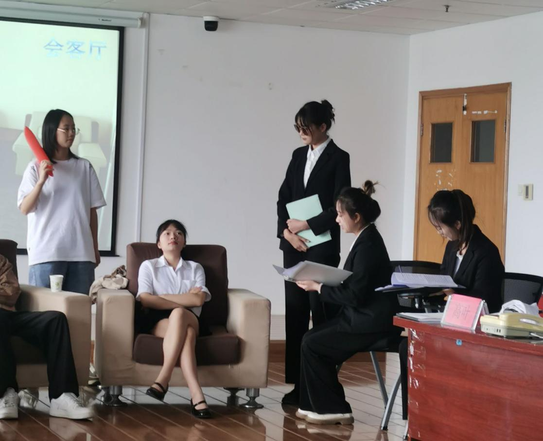 25日,实训进入关键阶段——情景模拟阶段。这一阶段由6个情景构成,每个情景都涉及秘书专业的说、写、做等核心技能,综合性很强。小组成员通过“职业代入”,合作完成情景演练。“樟脑丸”事件导致客户“闹访”,秘书从容应对,最终以柔克刚,变“危”为“机”,给围观同学上了一堂生动的危机公关课,可谓大饱眼福;无领导小组面试,同学们慷慨陈词、有礼有节,让沉浸其中的师生感受到这种全新面试形式所必备的综合素质;新品发布会、剪彩仪式、表彰大会、商务洽谈等情景实训时而热烈、时而紧张、时而舒缓,张弛有度,精彩纷呈。实训不仅巩固了同学们所学的理论知识,增长了见识,开阔了视野,而且提高了同学们的实践能力,培养了良好的团队协作精神。