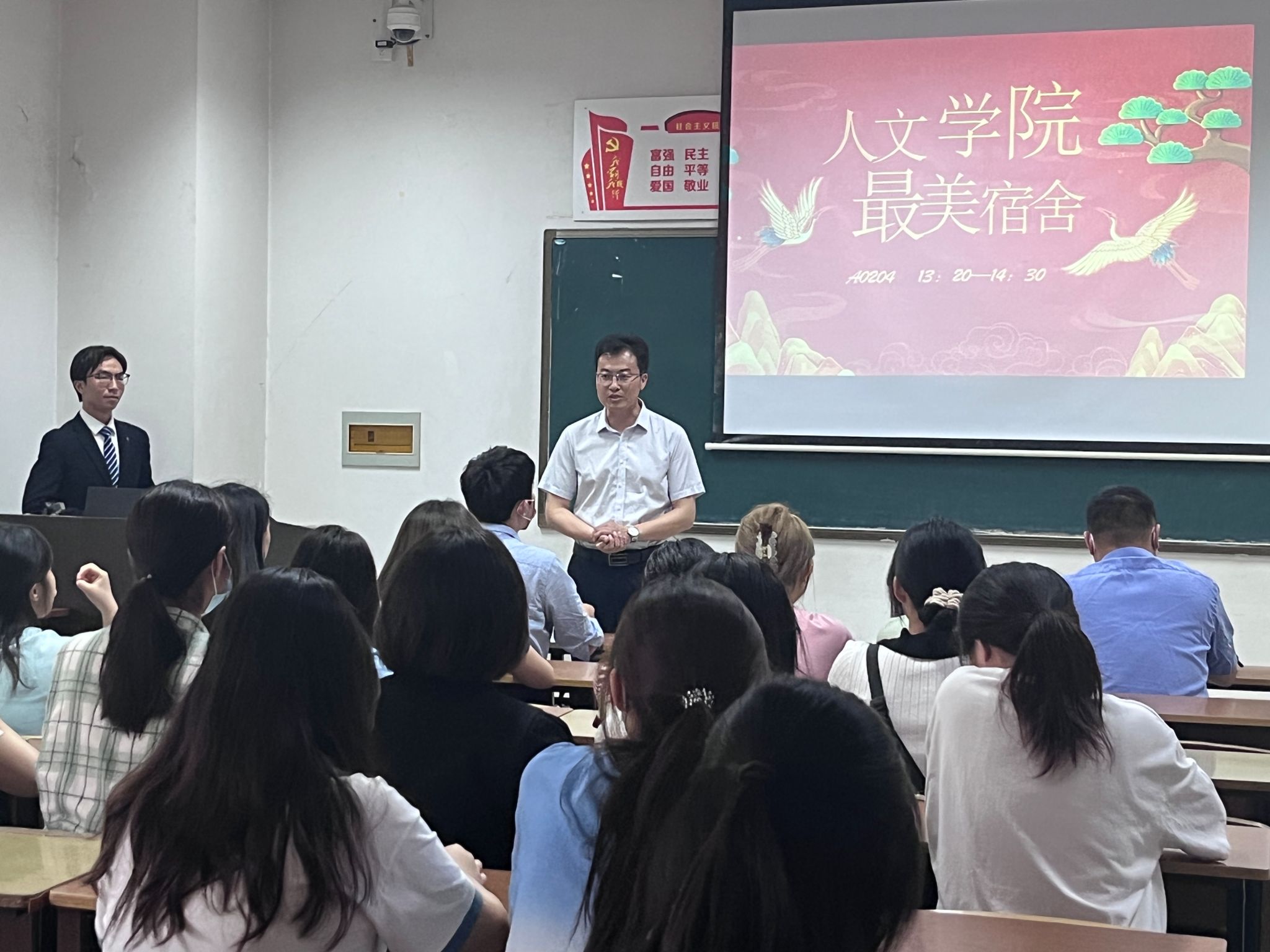 活动开始,管永刚说本次宿舍评比活动旨在打造良好宿舍环境,让同学们能更好的学习和生活。他希望通过此次活动可以引导同学们形成良好的生活习惯,将外在约束内化为行为自觉,建设积极向上的宿舍文化。本次活动形式主要是线下评比与线上展示相结合。线下评比重点为寝室安全用电和寝室卫生,线上展示则以宿舍文化,宿舍环境,宿舍氛围等方面展开。