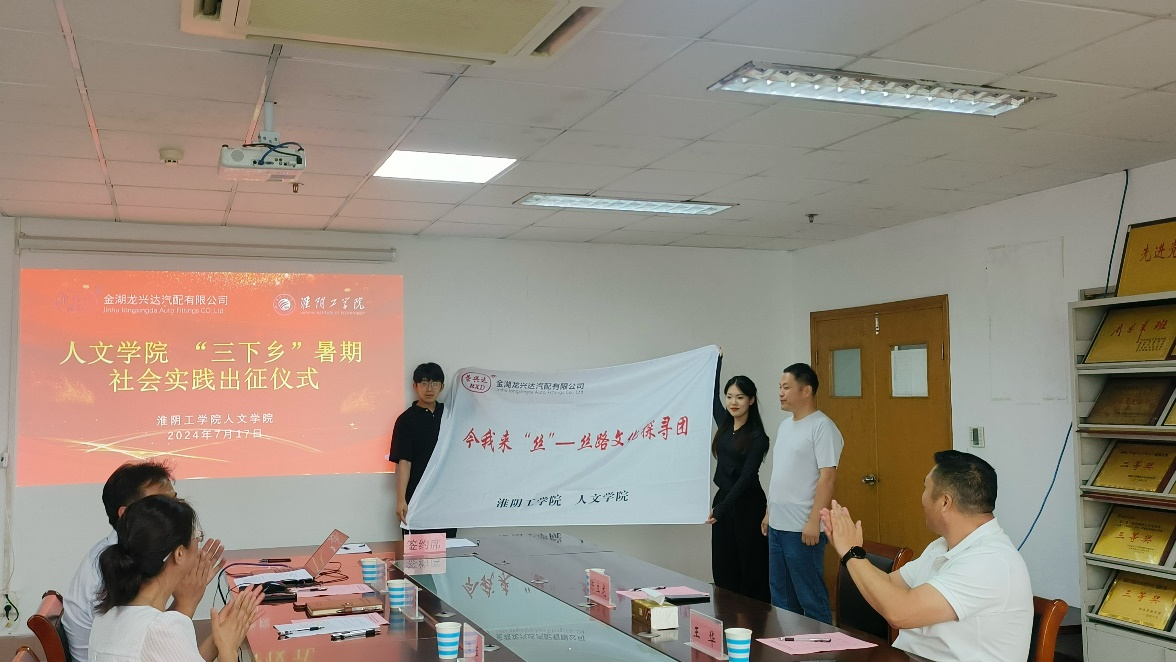 在社会实践出征仪式环节,吴翔从项目背景、实践基础、成员展示与实施方案等方面详细介绍了今我来“丝”暑期三下乡团队的实践内容。员工代表王鸿飞进行了出征表态发言,表达了对实践出征的憧憬与文化探寻的向往。陈立龙与田萍分别为实践团授队旗与院旗。